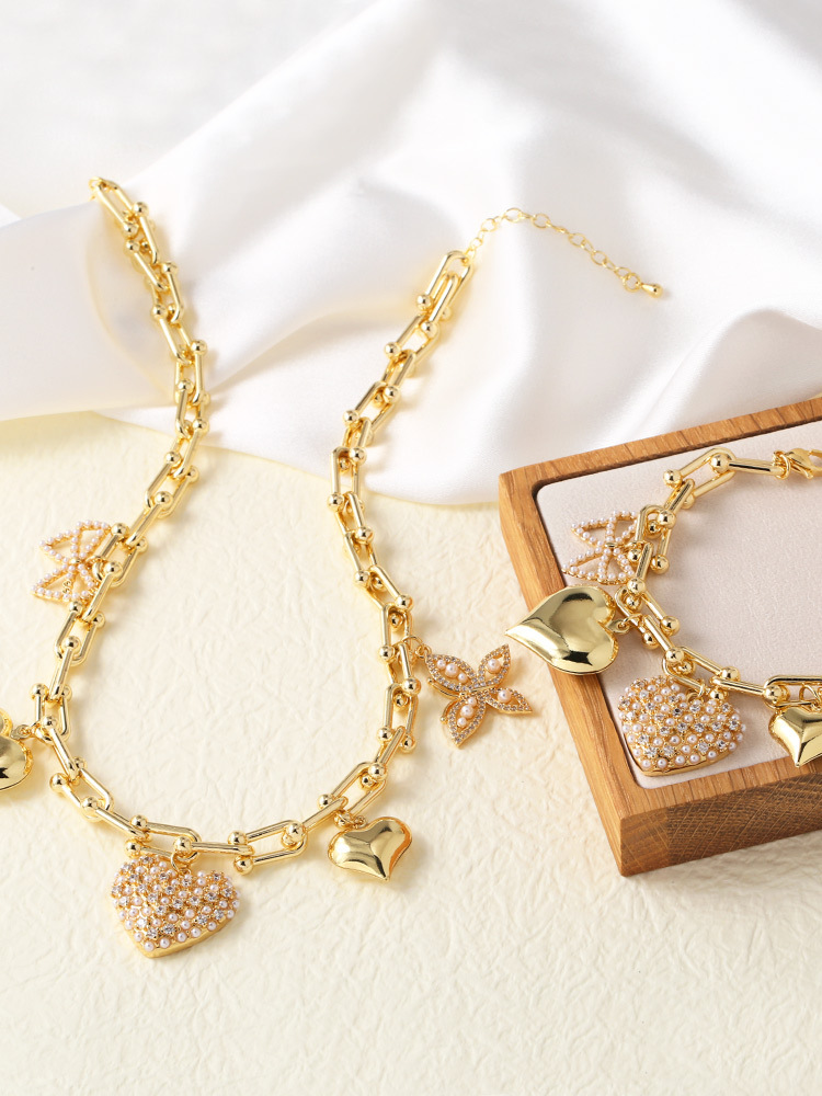Clearance jewelry Europe and the United States hot selling love pearl butterfly pendant gold-plated necklace bracelet set female nka042