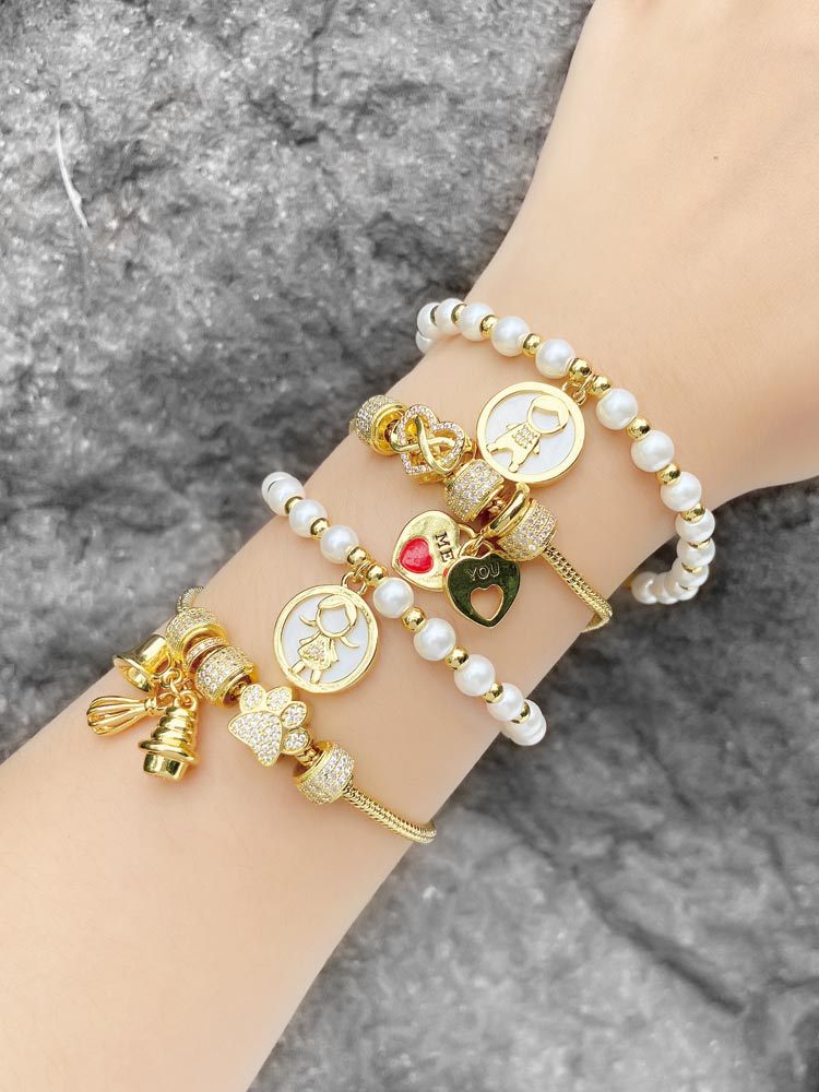 Clearance jewelry Europe and the United States hot selling pearl bracelet gold-plated full zircon boy girl love bracelet brb88