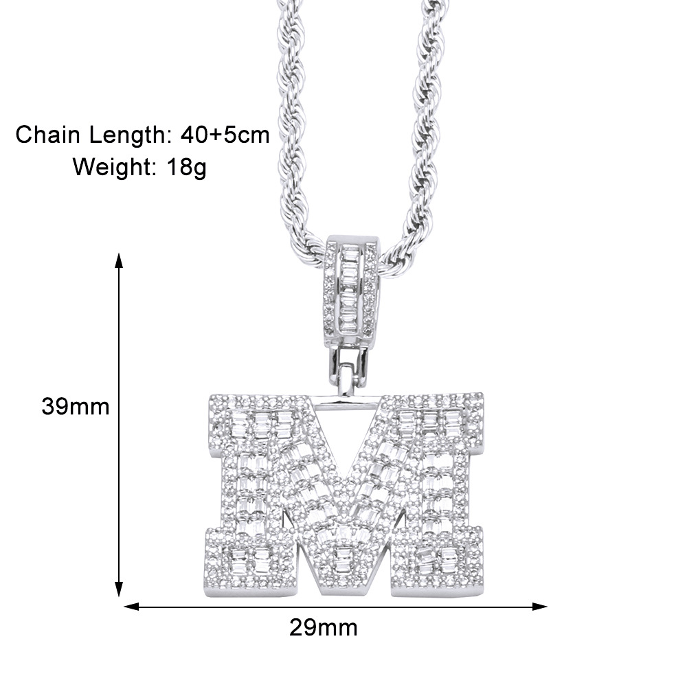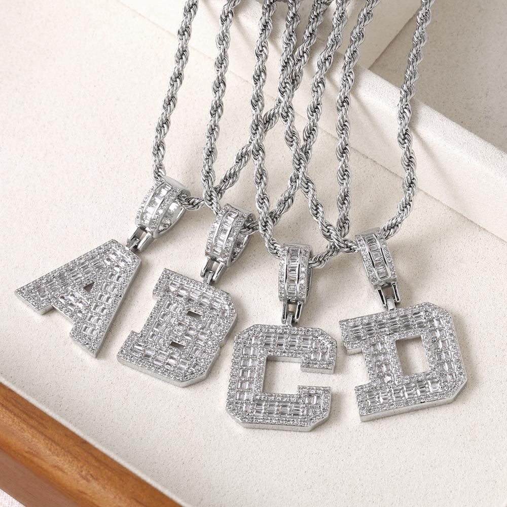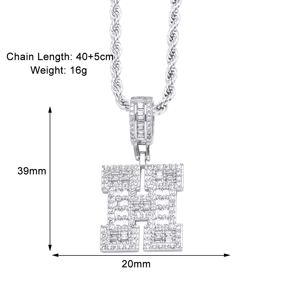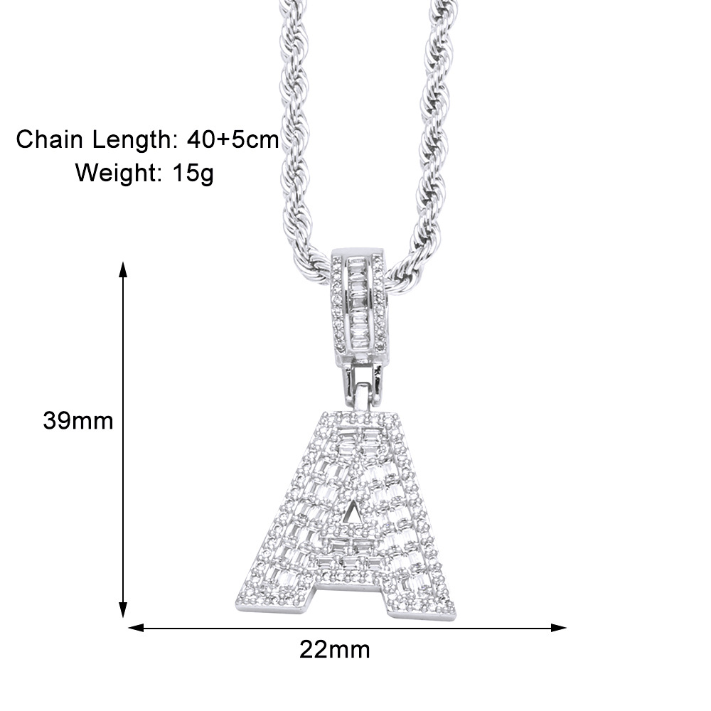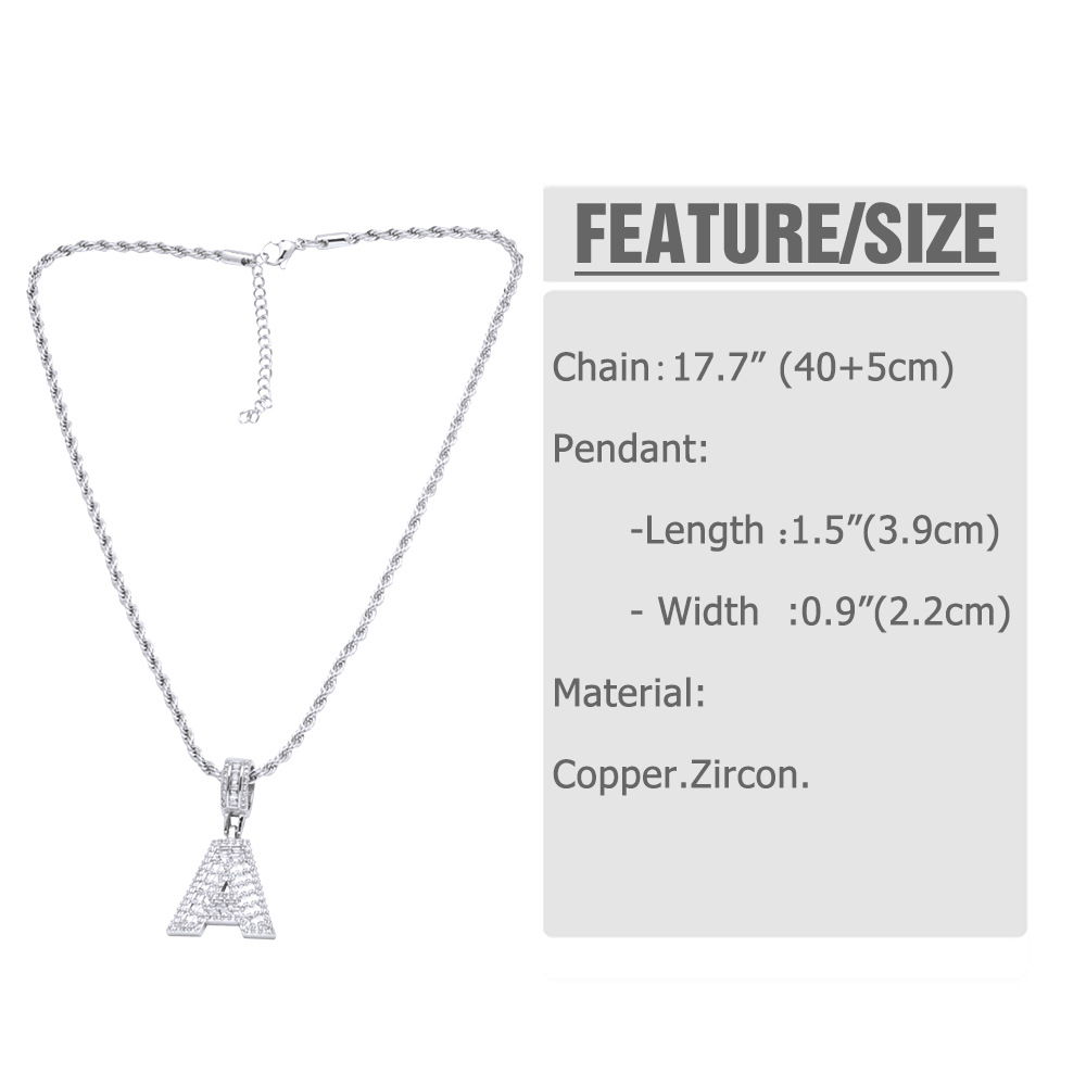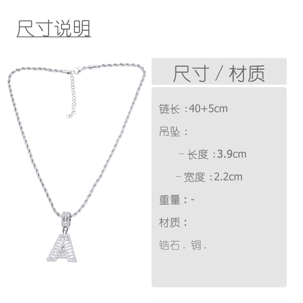 Hot selling zircon English letter necklace European and American fashion hip hop men and women 26 letter necklace nkb174