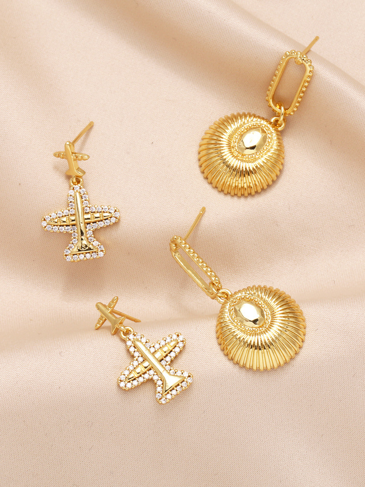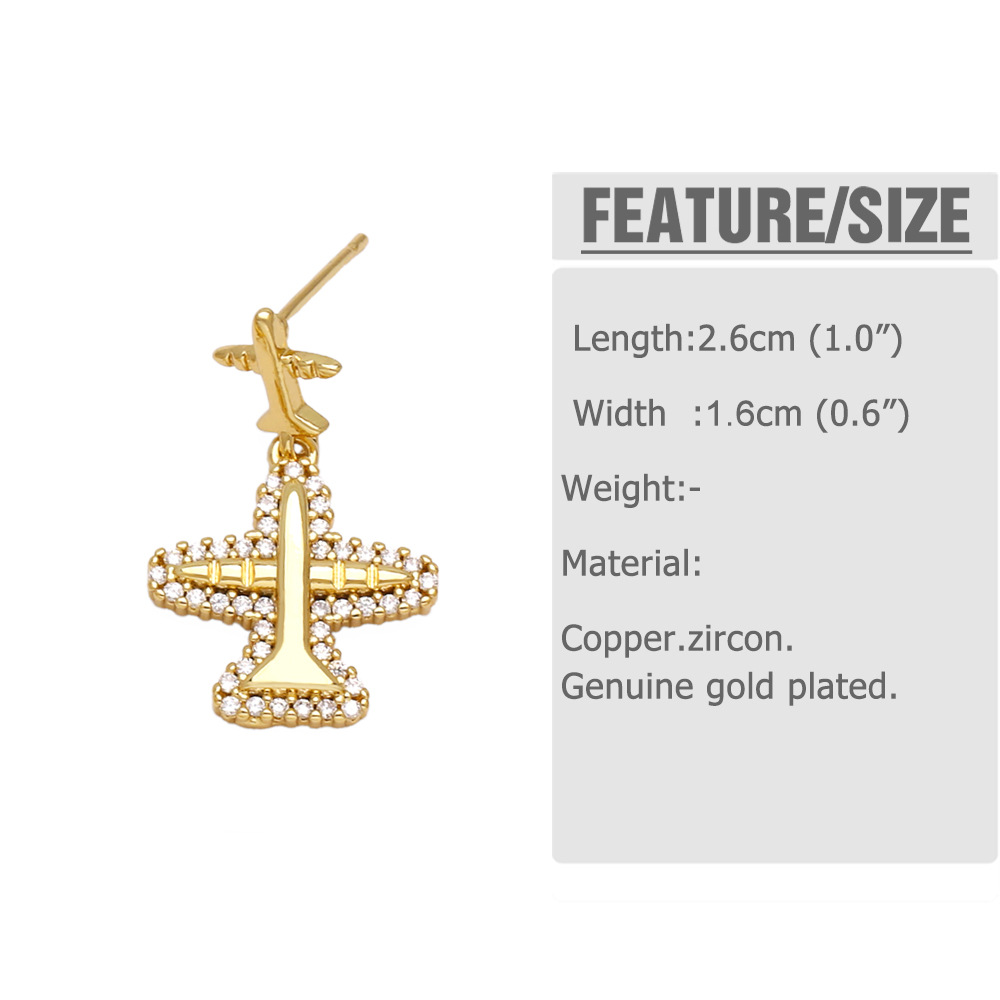 Clearance jewelry inlaid zircon airplane pendant earrings versatile gold-plated earrings earrings female erz17