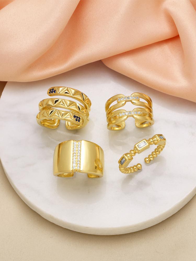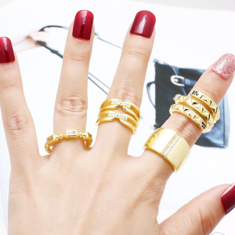 Clearance jewelry irregular double-layer ring female copper plated 18k gold polished open ring rih93