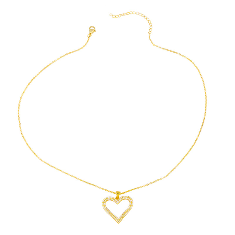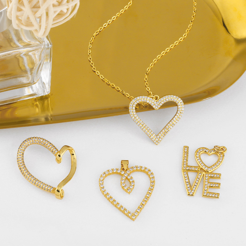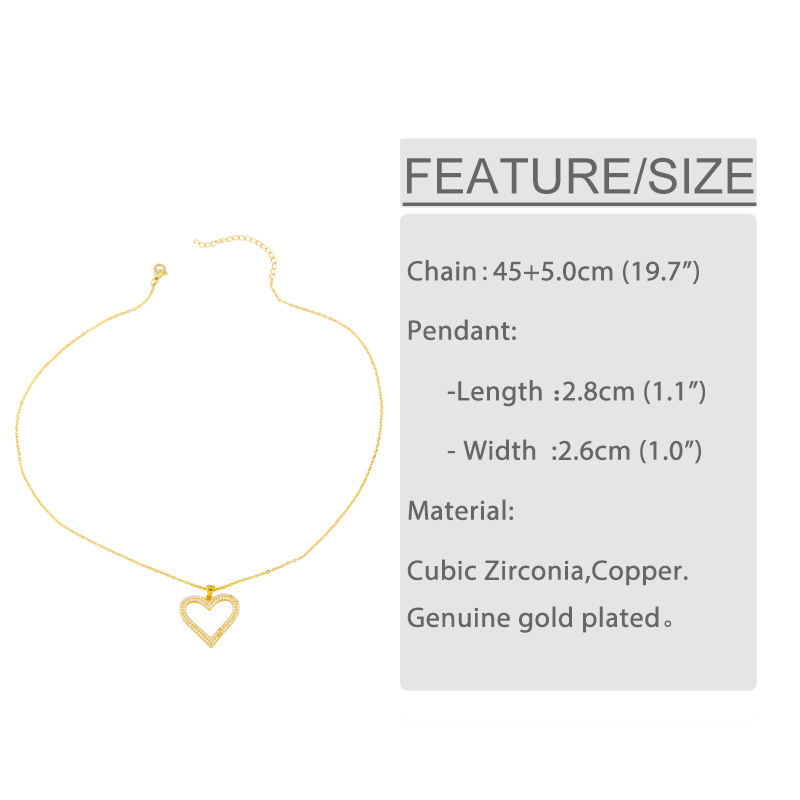 Clearance jewelry love hollow pendant copper zircon stainless steel chain heart-shaped pendant nkt85