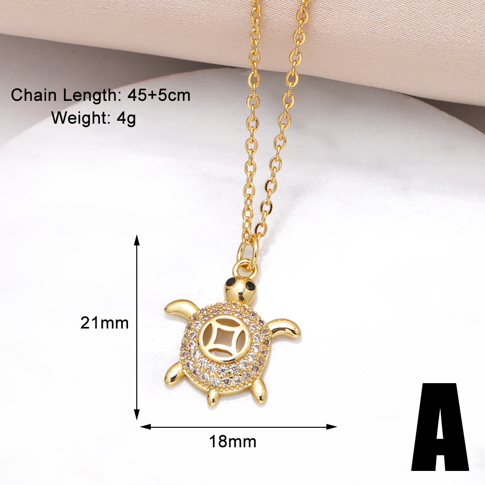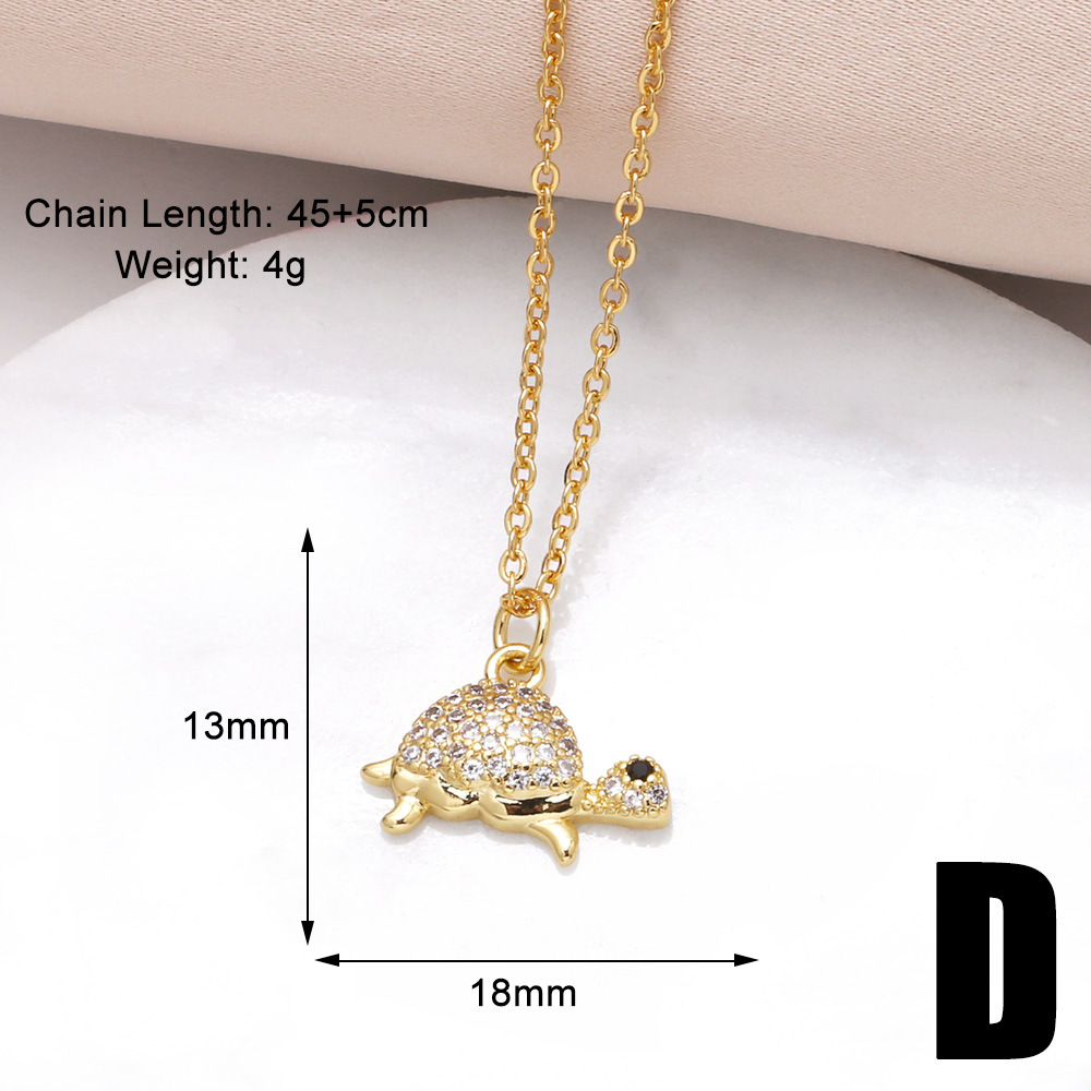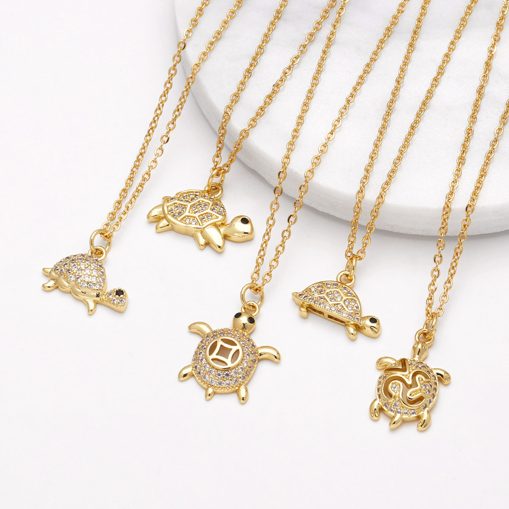 Clearance jewelry turtle pendant necklace copper plated 18k gold full zircon clavicle chain nkn33