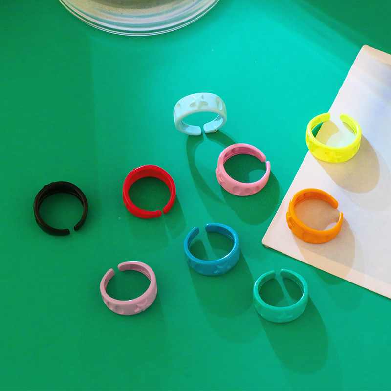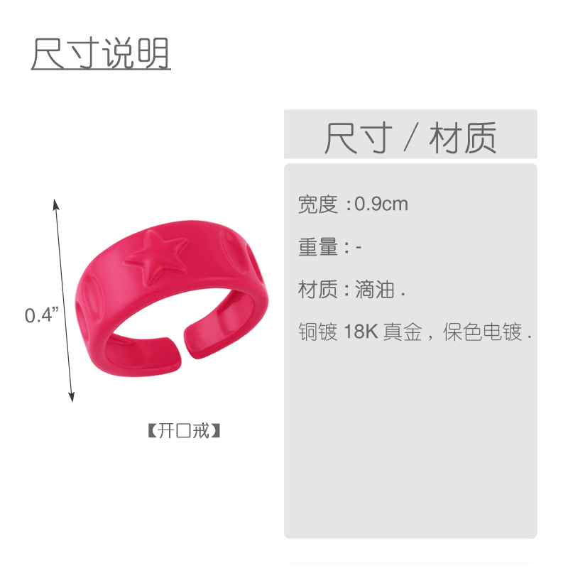 Clearance Korean retro color macaron five-pointed star ring style Internet celebrity girl plain ring rim17