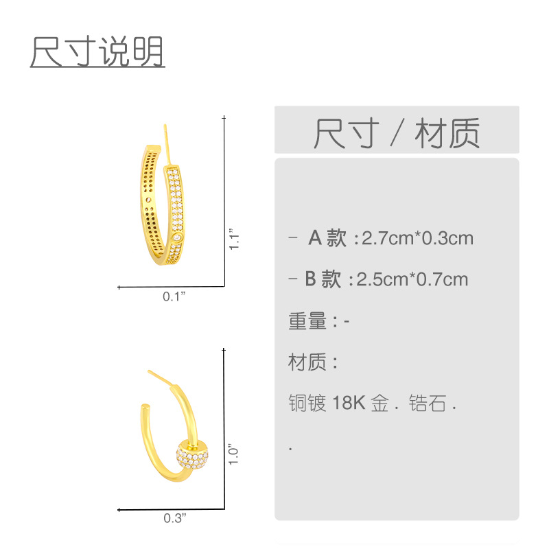 Clearance Korean temperament cool style metal C-shaped micro-inlaid zircon earrings high-end light luxury earrings erx08