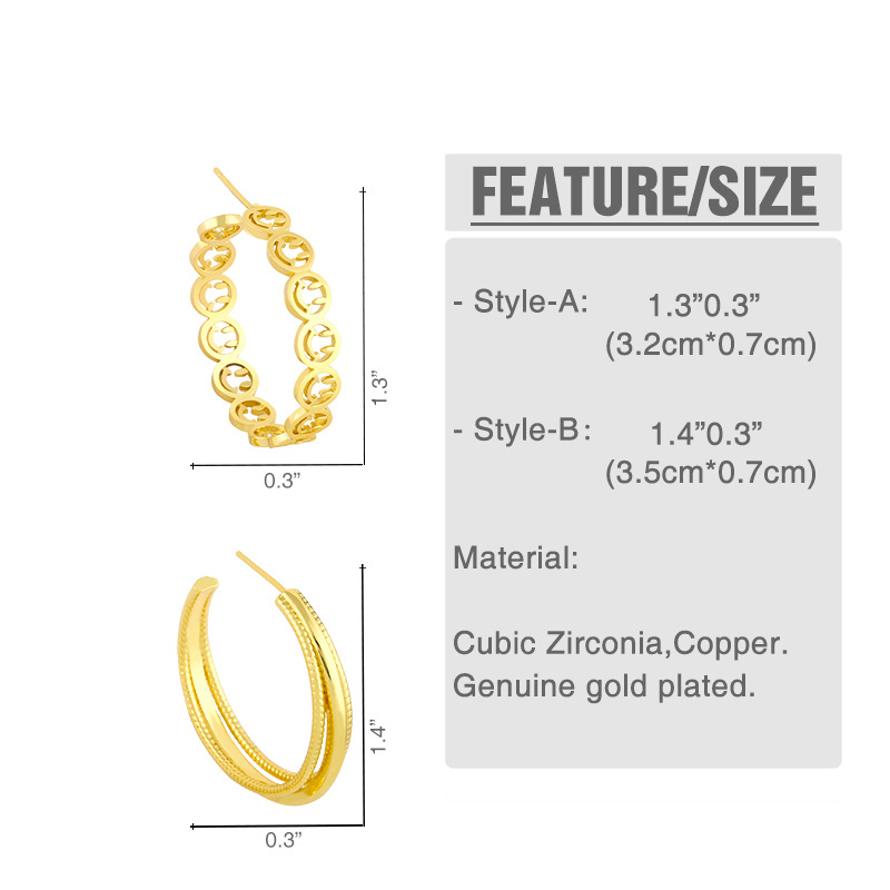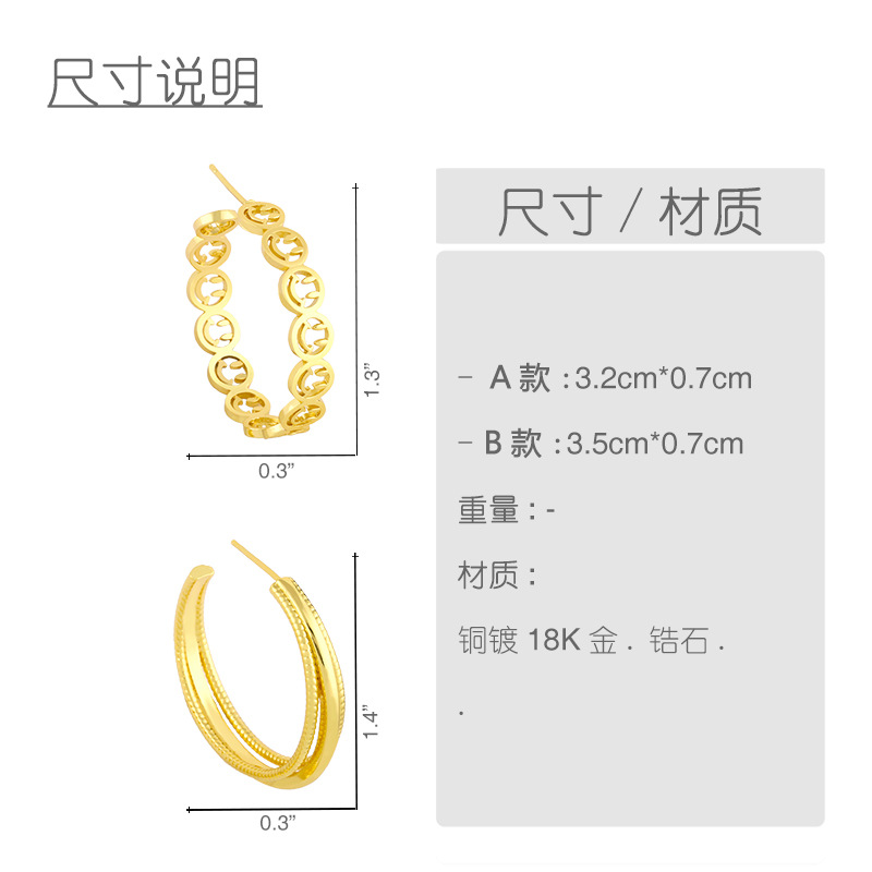 Clearance large circle earrings simple C-shaped three-layer earrings female European and American style personality trend smiley face expression earrings erw89