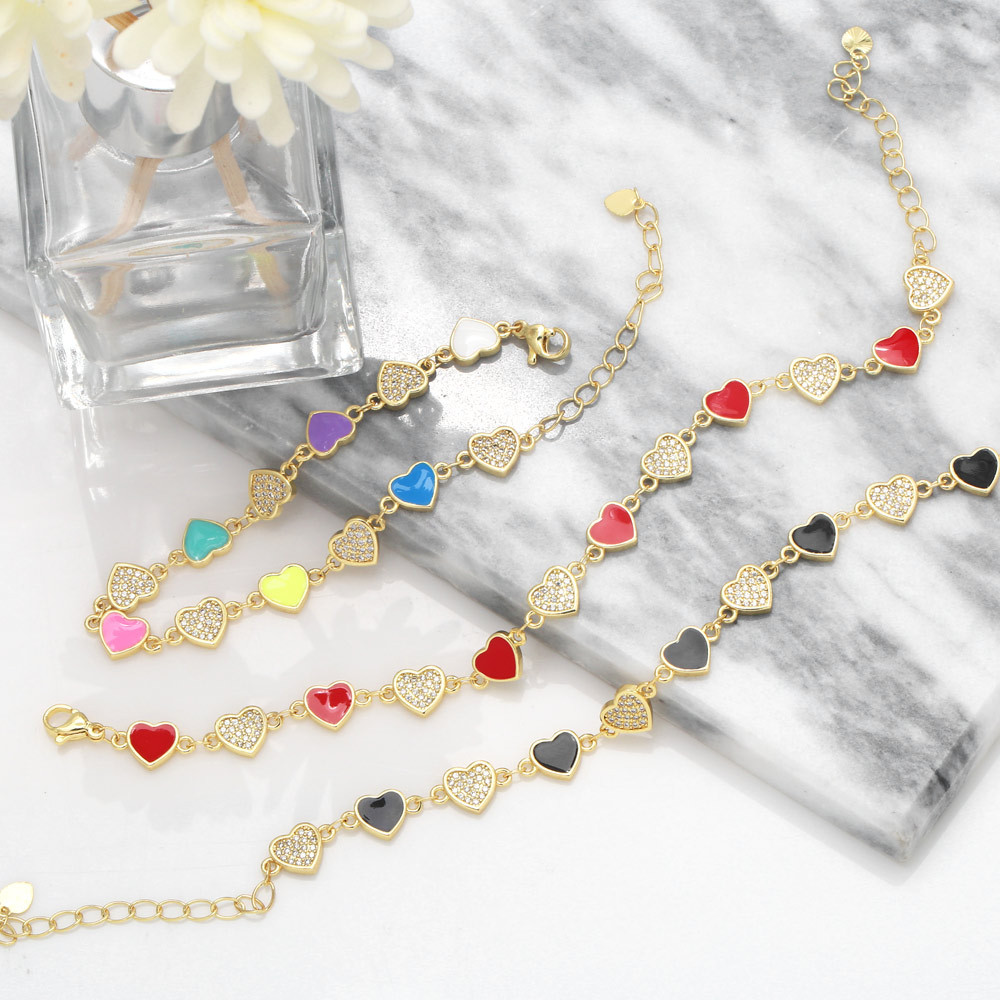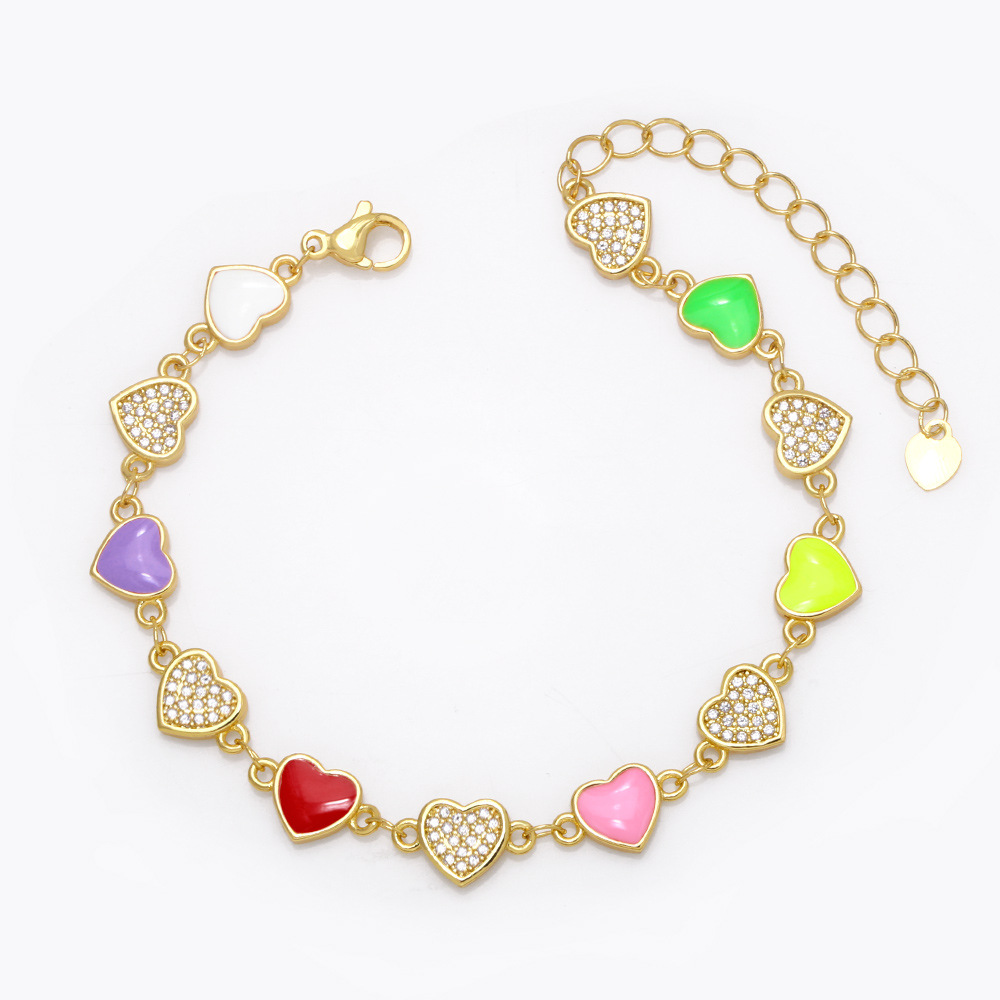 Clearance love bracelet women European and American Bohemian color oil drop heart shaped bracelet niche diamond hand jewelry brf88