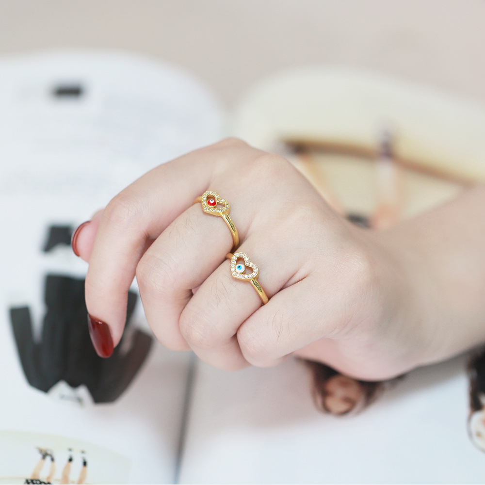 Clearance love devil eye ring female niche design simple adjustable heart-shaped eye ring riq31