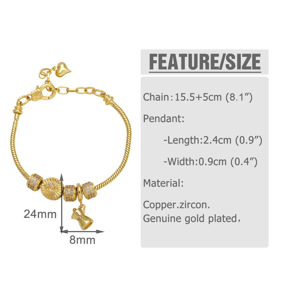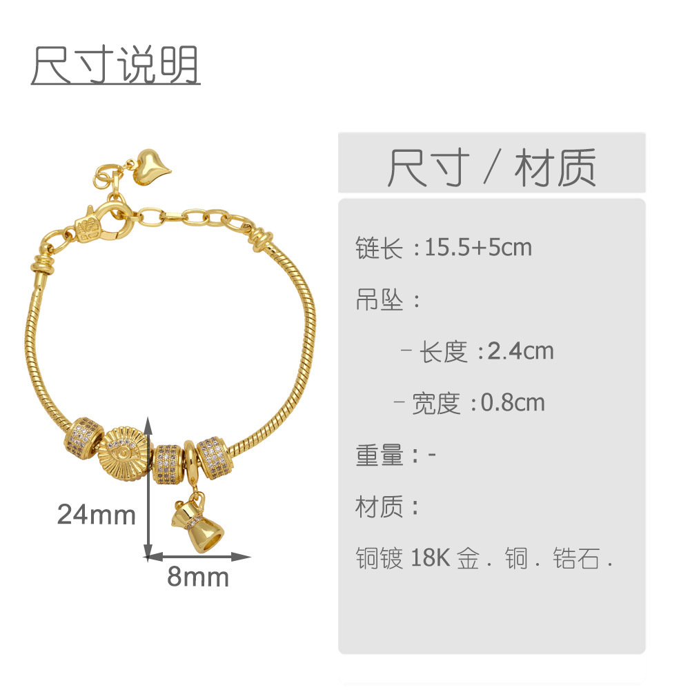 Clearance love peach heart zircon pendant bracelet copper plated 18k gold cross bracelet brf89