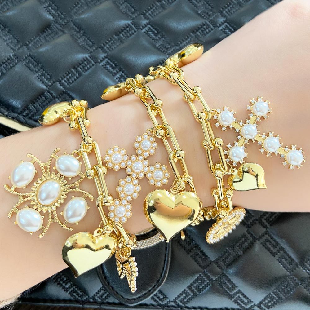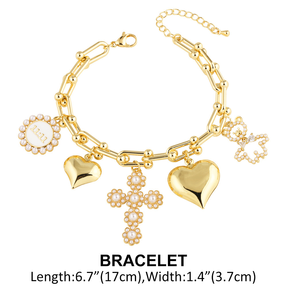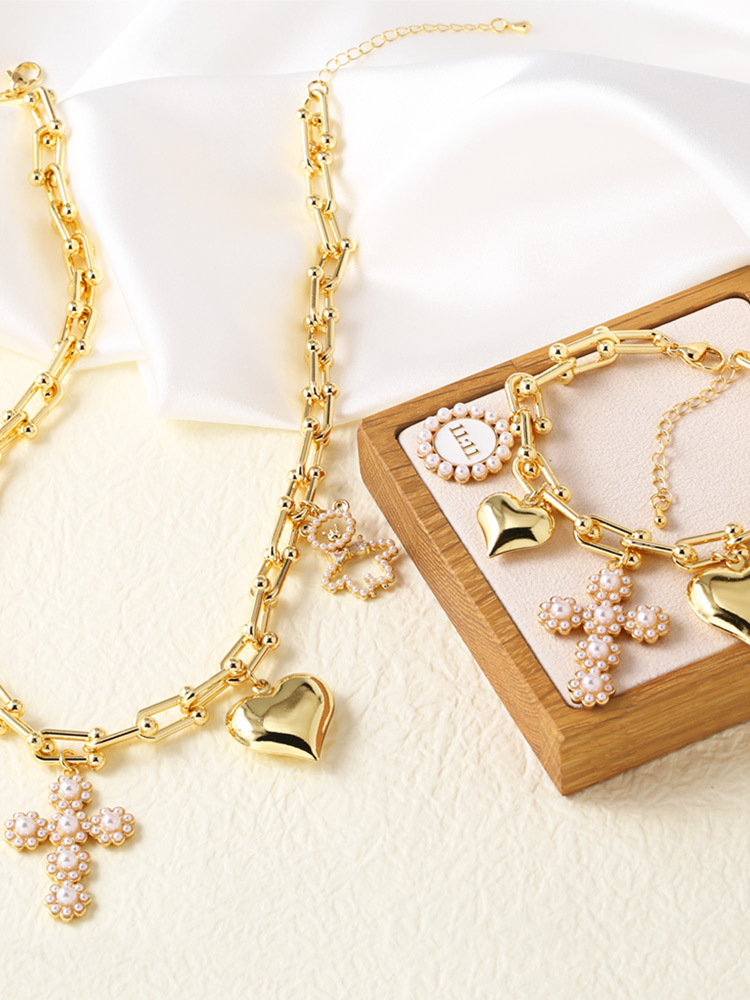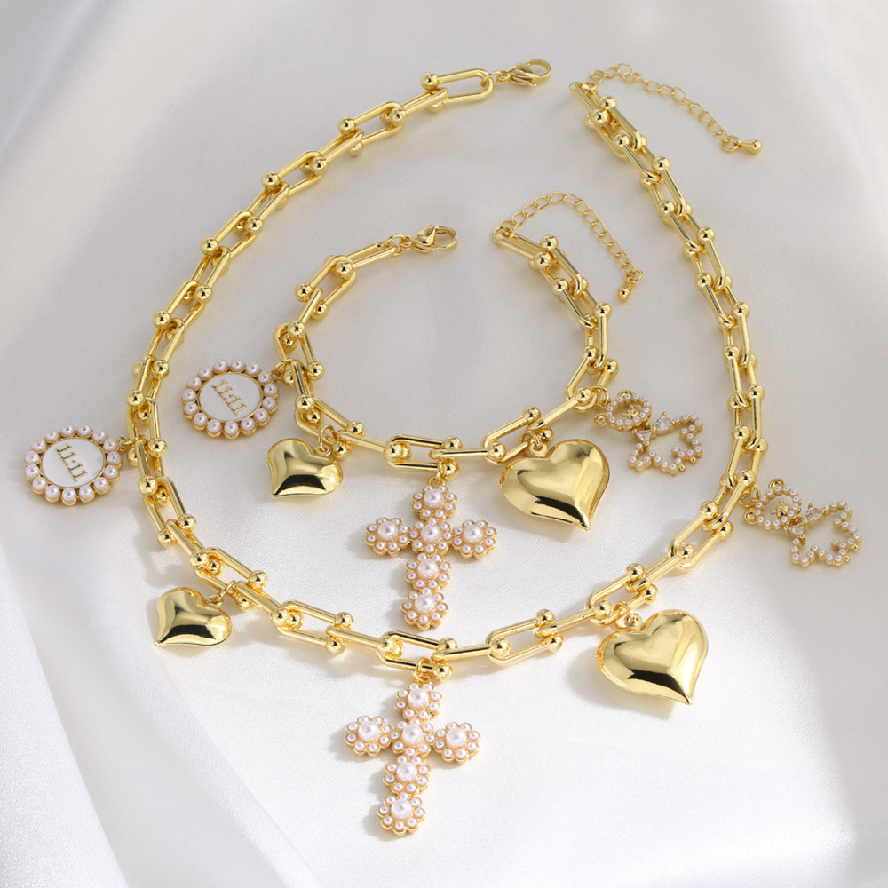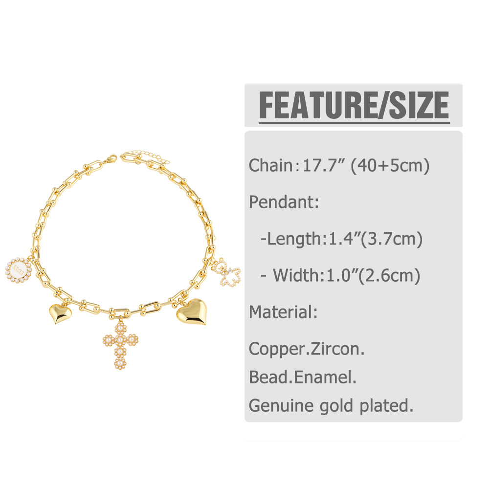 Clearance Love Pearl Cross Pendant Necklace Copper Plated 18k Gold Clavicle Chain nka038
