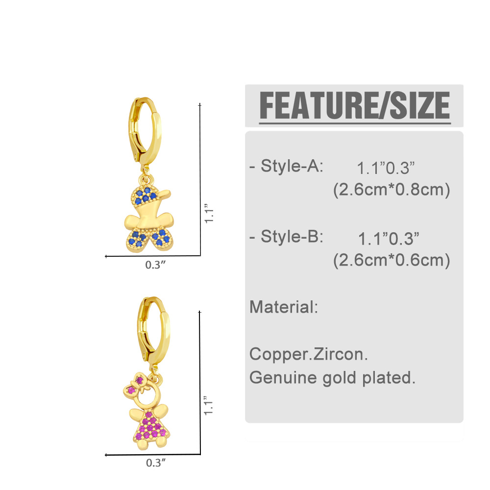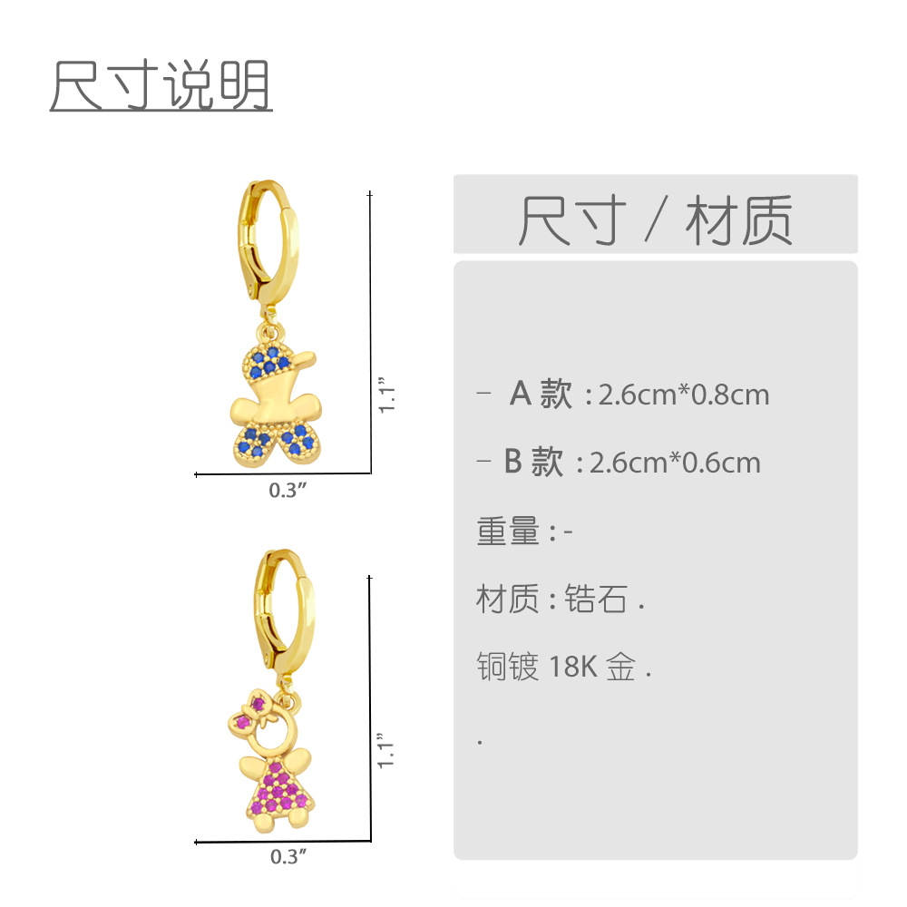Clearance micro-inlaid zircon cartoon character men and women earrings European and American earrings girlfriends students INS Internet celebrity earrings ery26