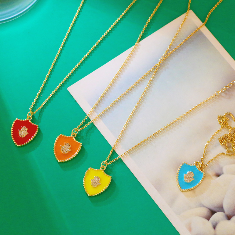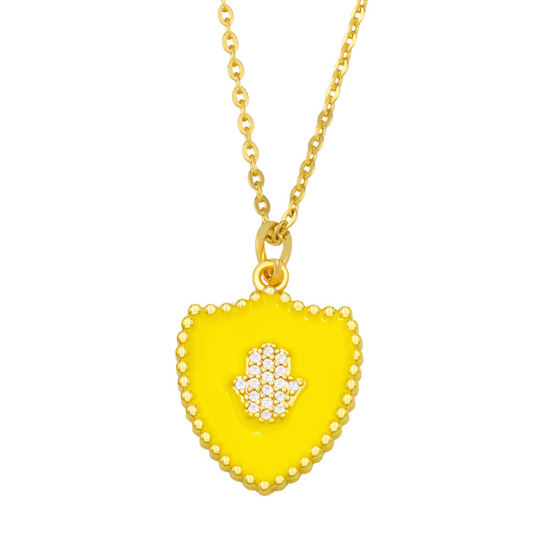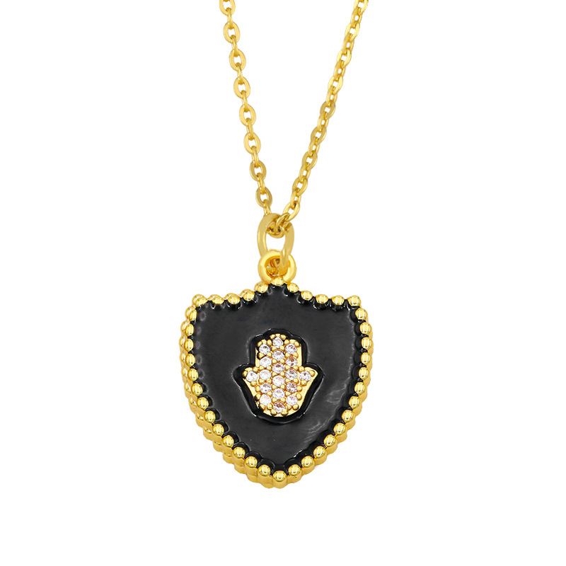 Clearance new diamond necklace creative hip-hop oil drop shield palm pendant trend necklace female nkv69