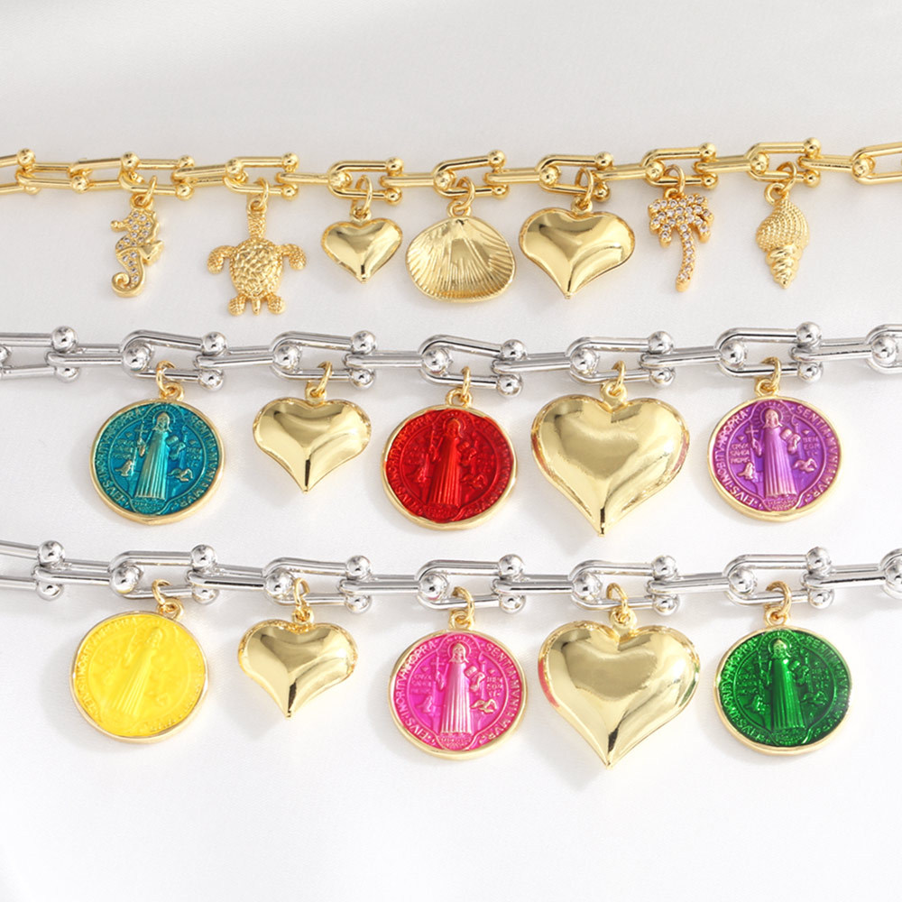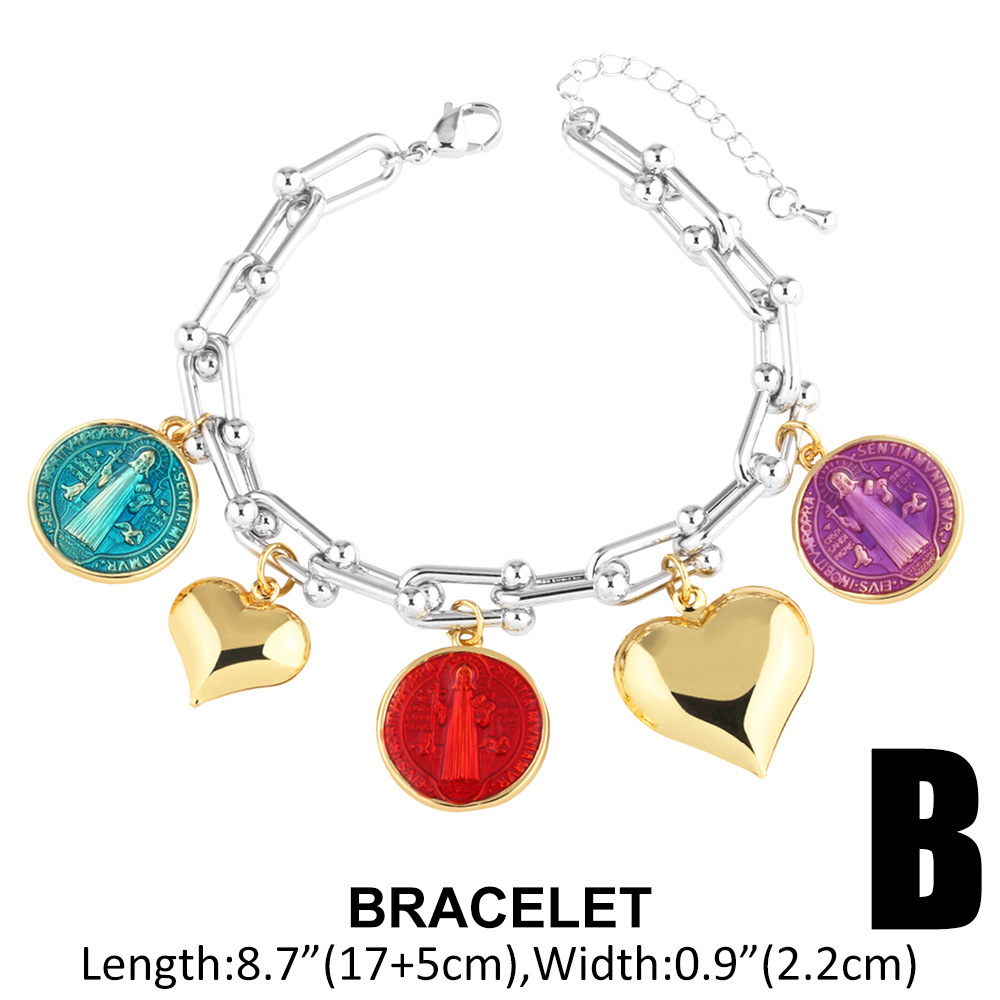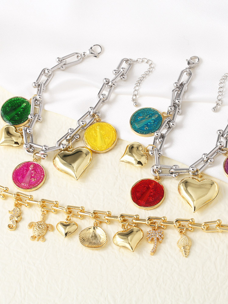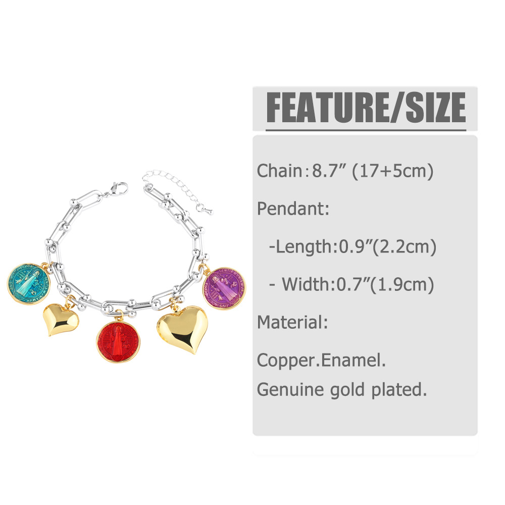 Clearance new love peach color Madonna two-color pendant bracelet hand jewelry female bre08