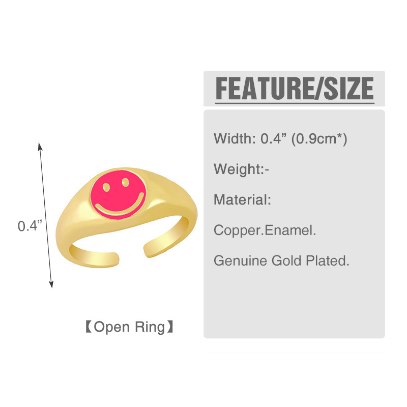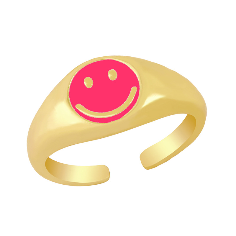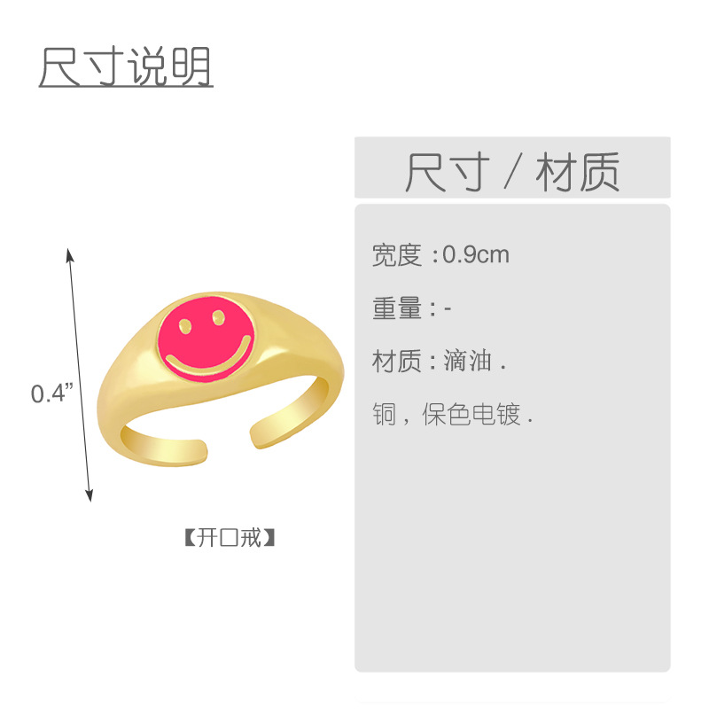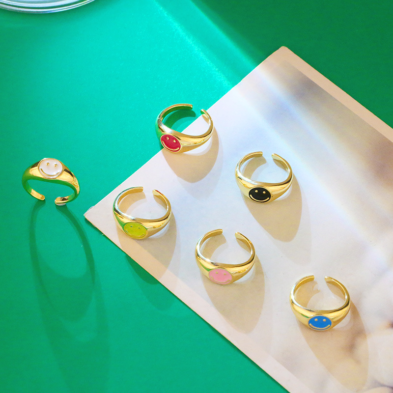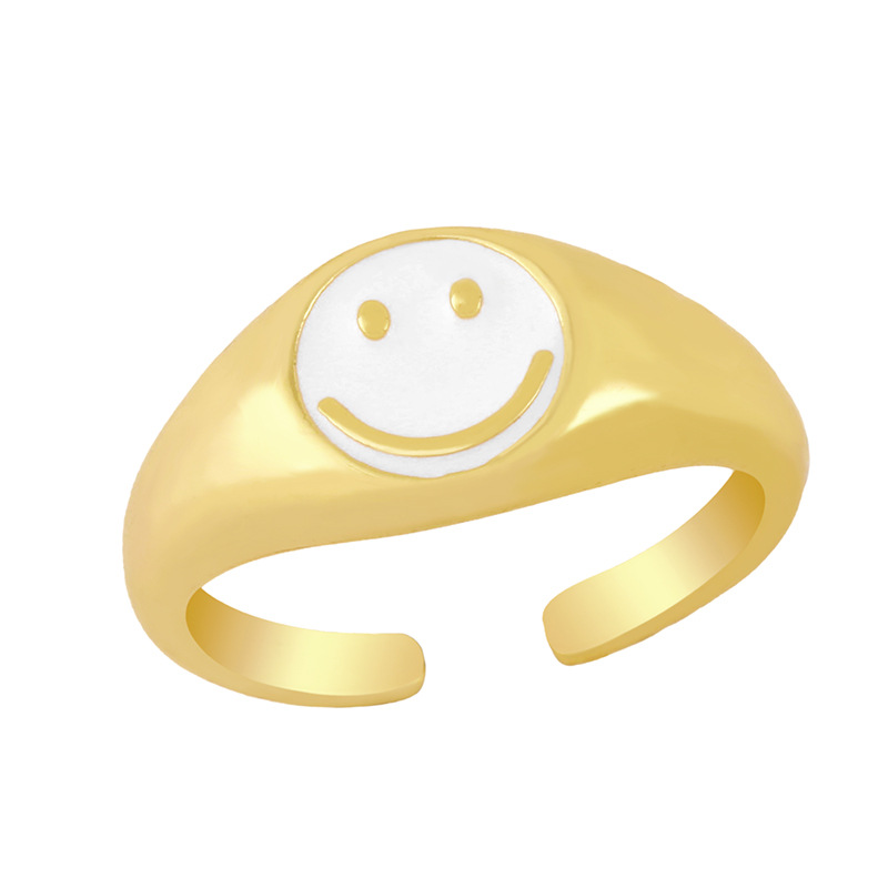 Clearance new smile cute ring women's trendy simple women's brass 18K gold oil drop ring rim51