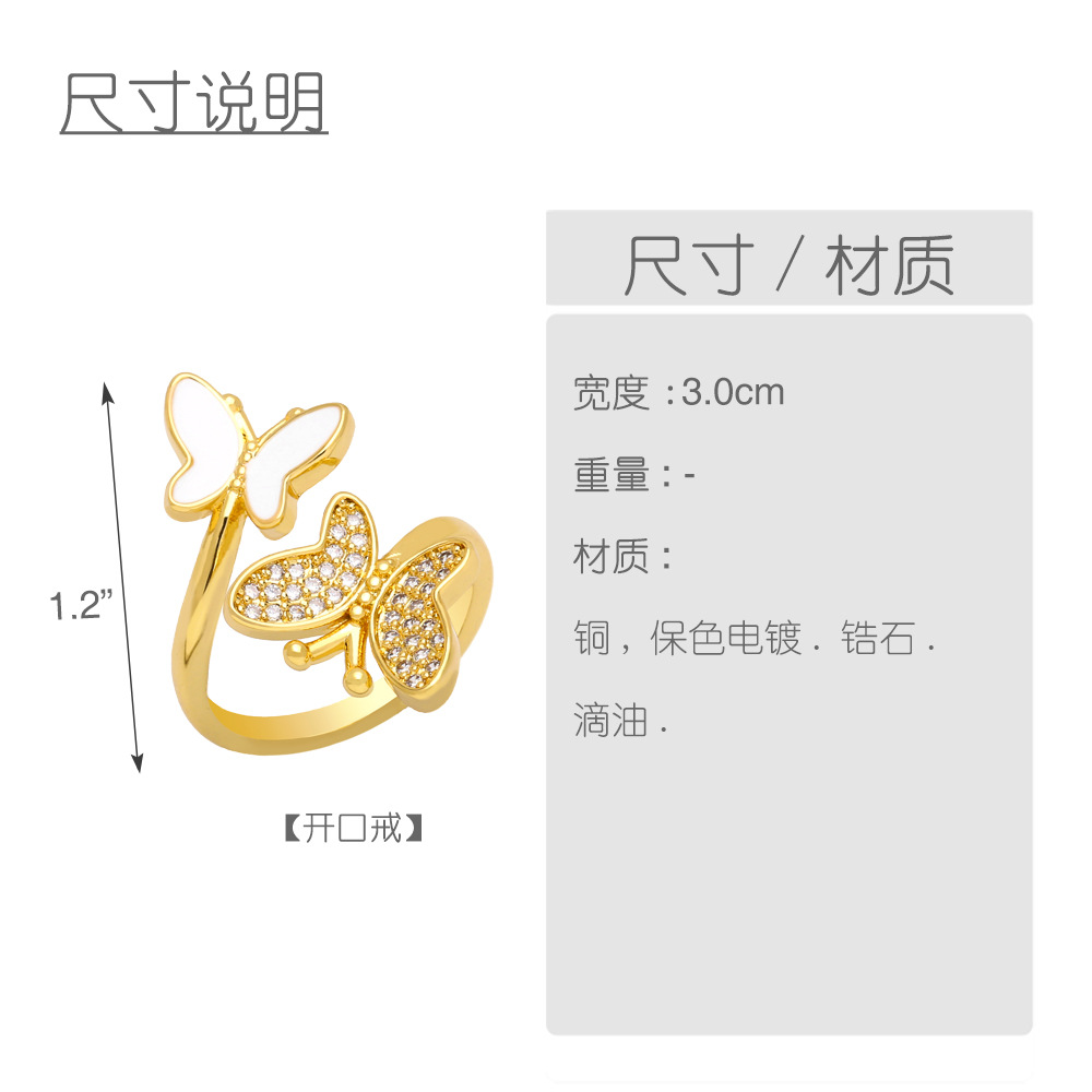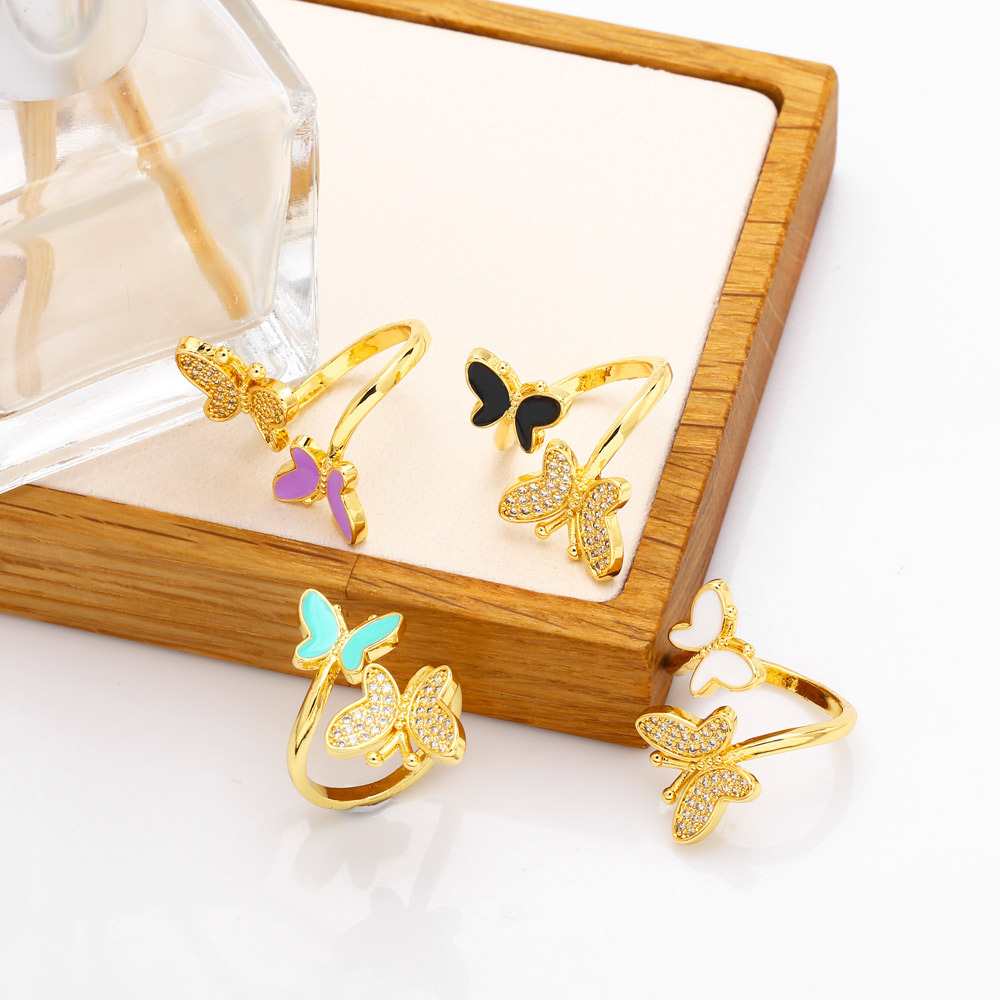 Clearance niche design double butterfly oil drop zircon ring open ring female versatile index finger ring wholesale riq68