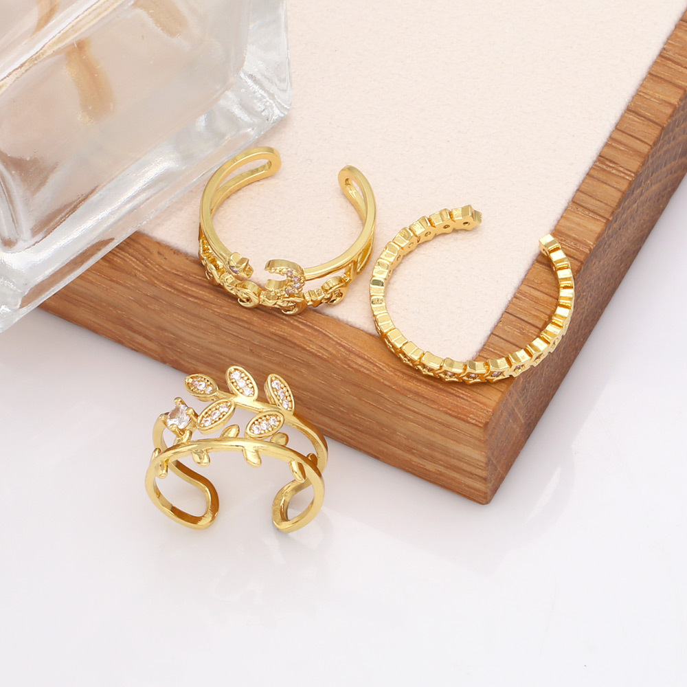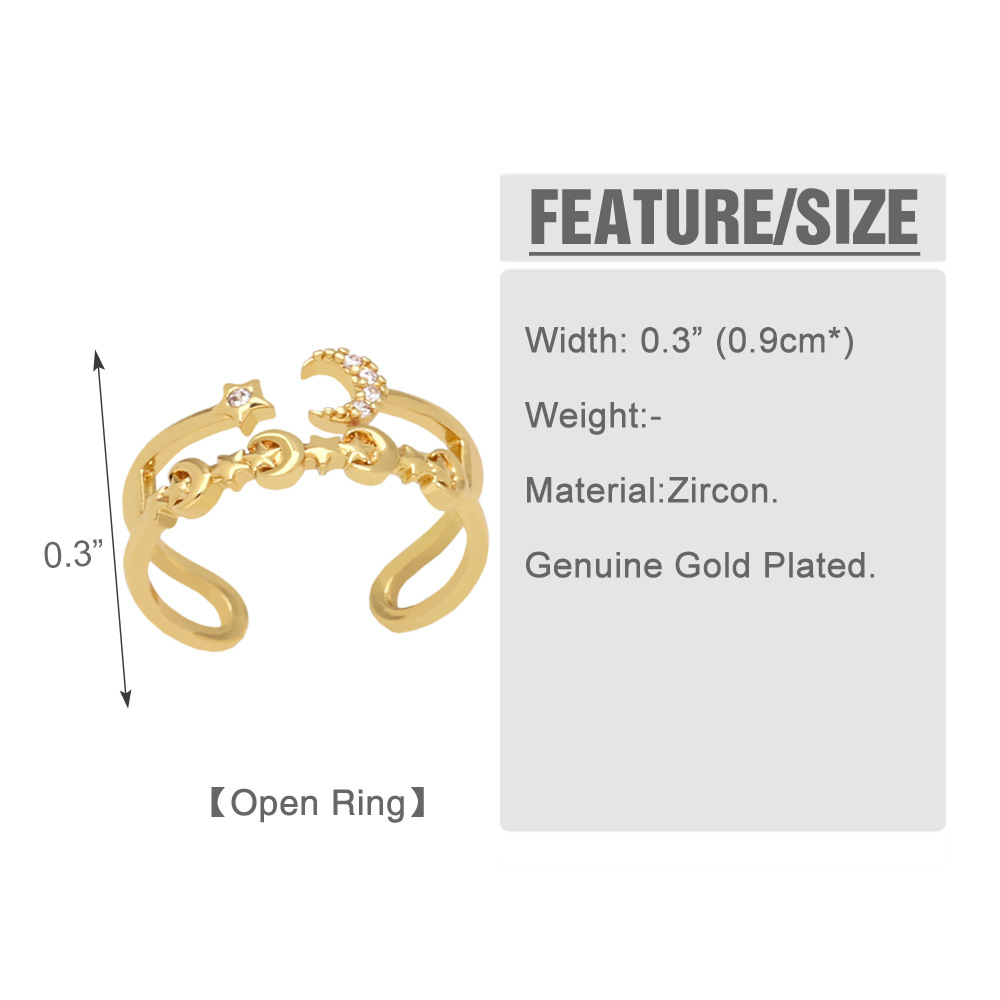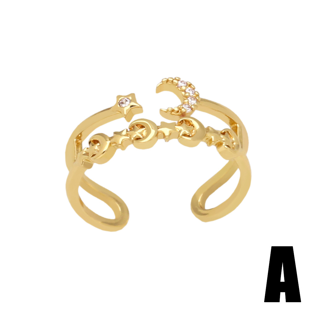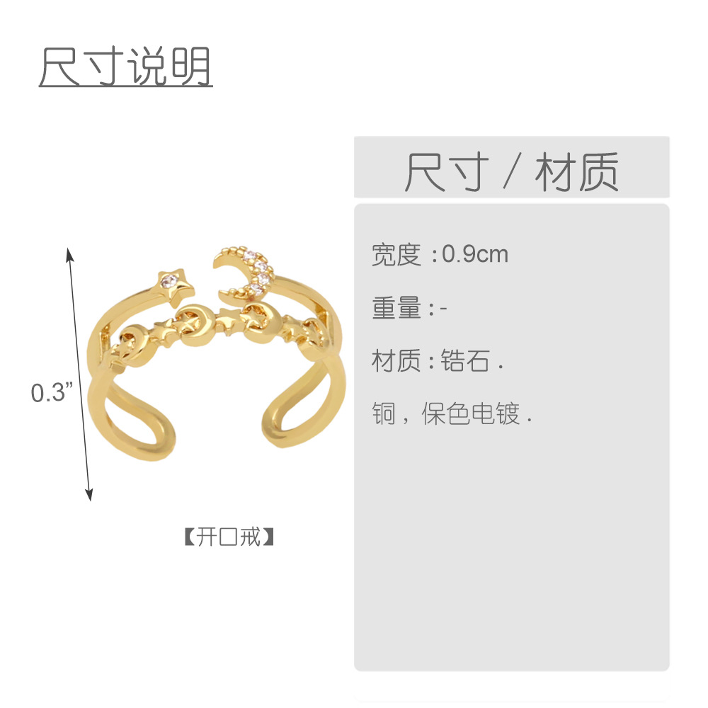 Clearance niche design personality double row star and moon ring simple internet celebrity temperament diamond leaf ring female rir28