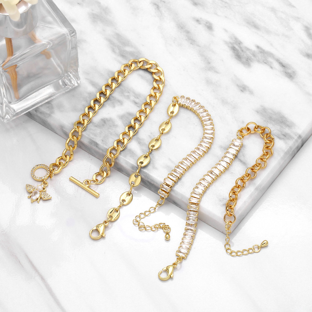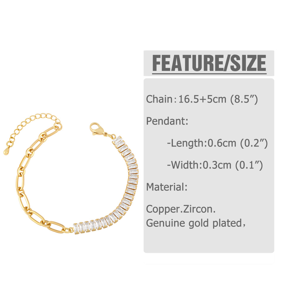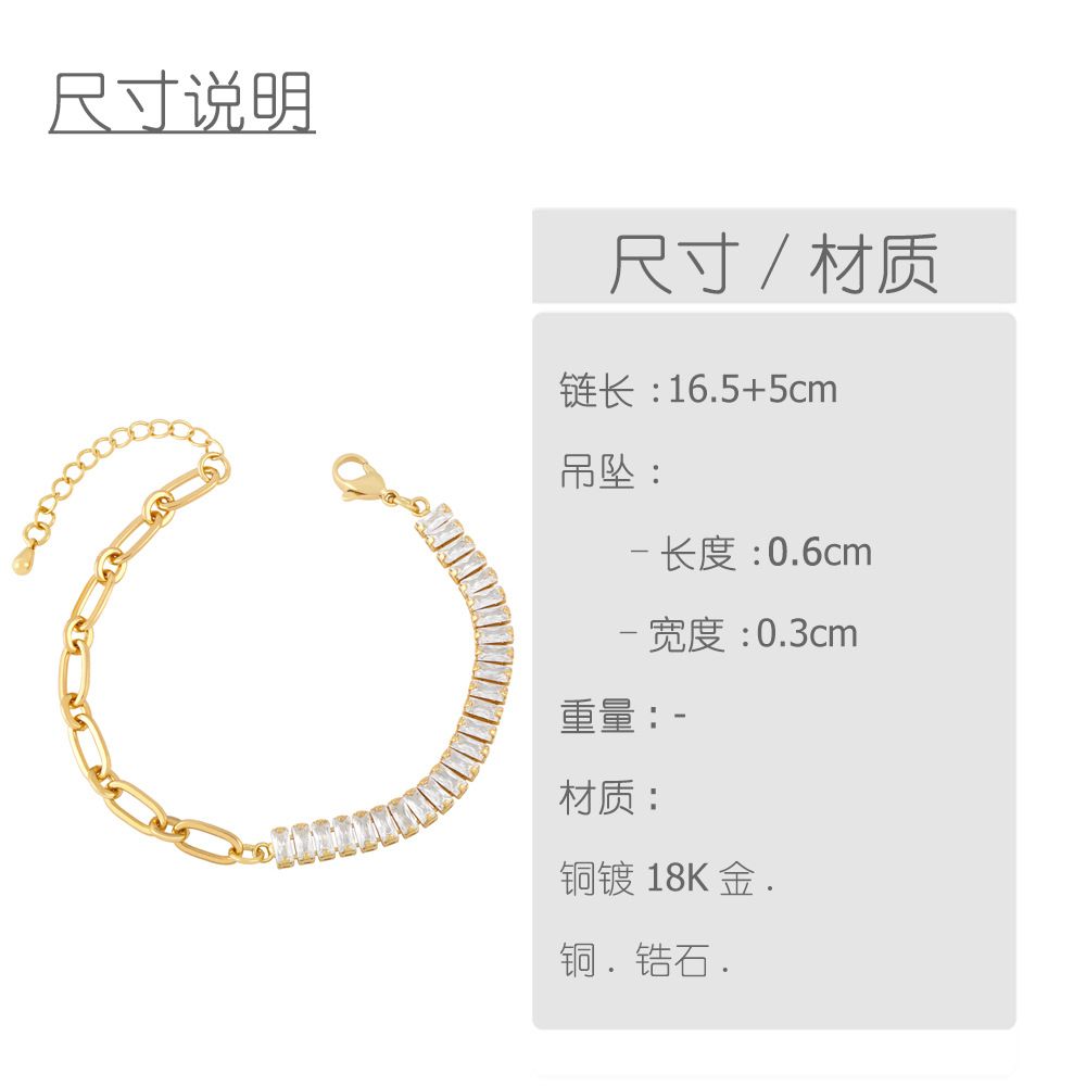 Clearance niche light luxury splicing square zircon bracelet female European and American style 18K gold hand jewelry brf04