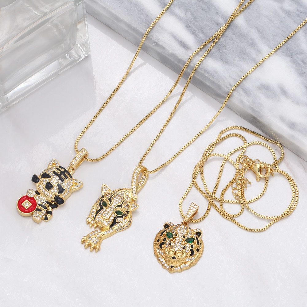 Clearance oil drop diamond tiger necklace trendy men's hip hop punk style necklace wholesale nkb221