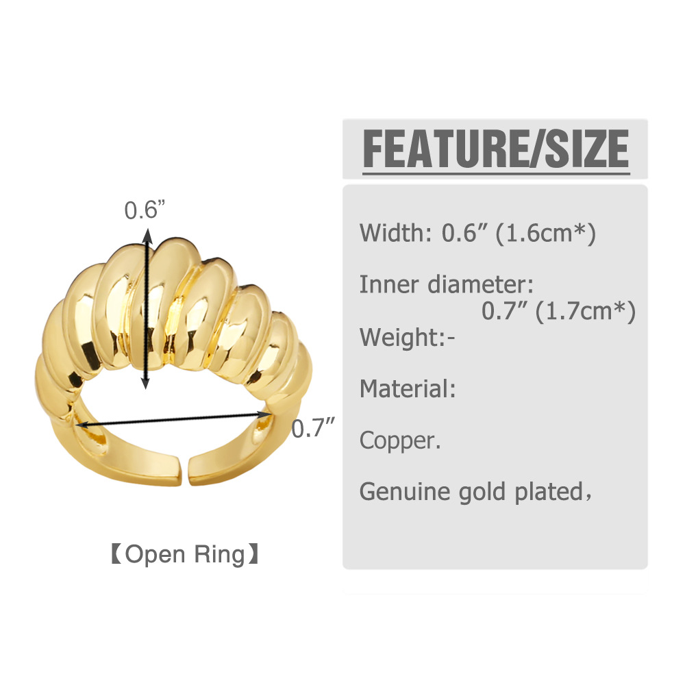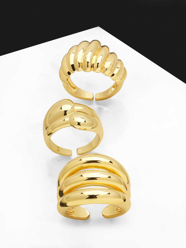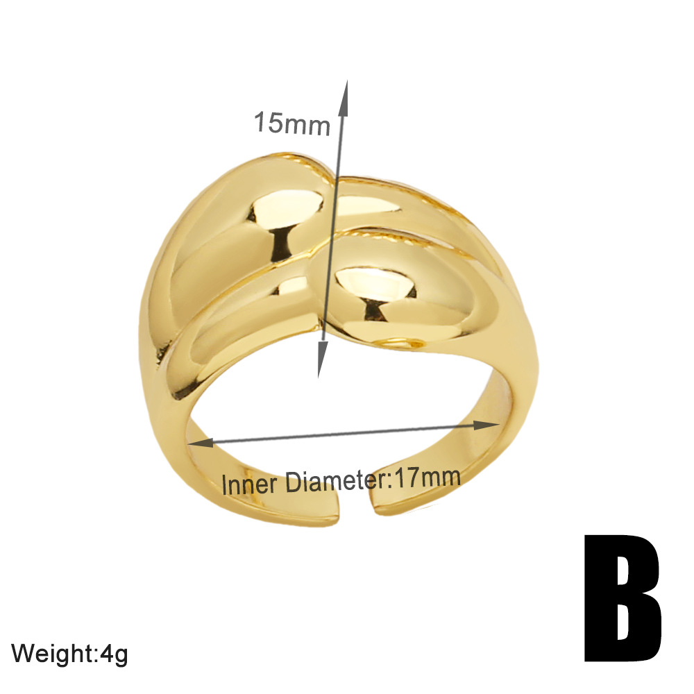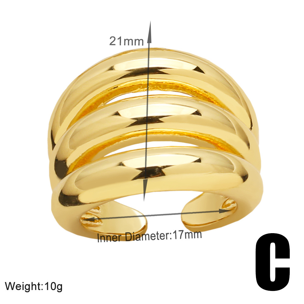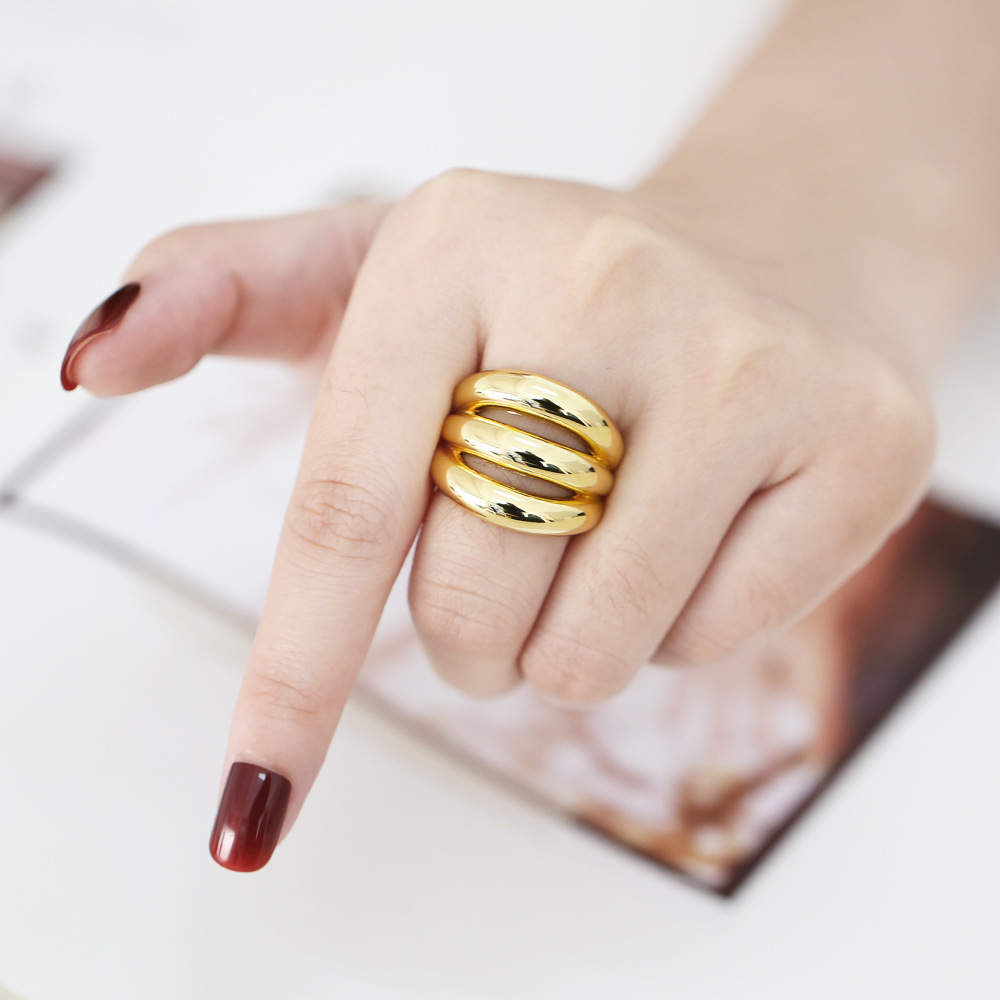 Clearance open ring temperament versatile polished copper plated 18k gold double layer ring ris18