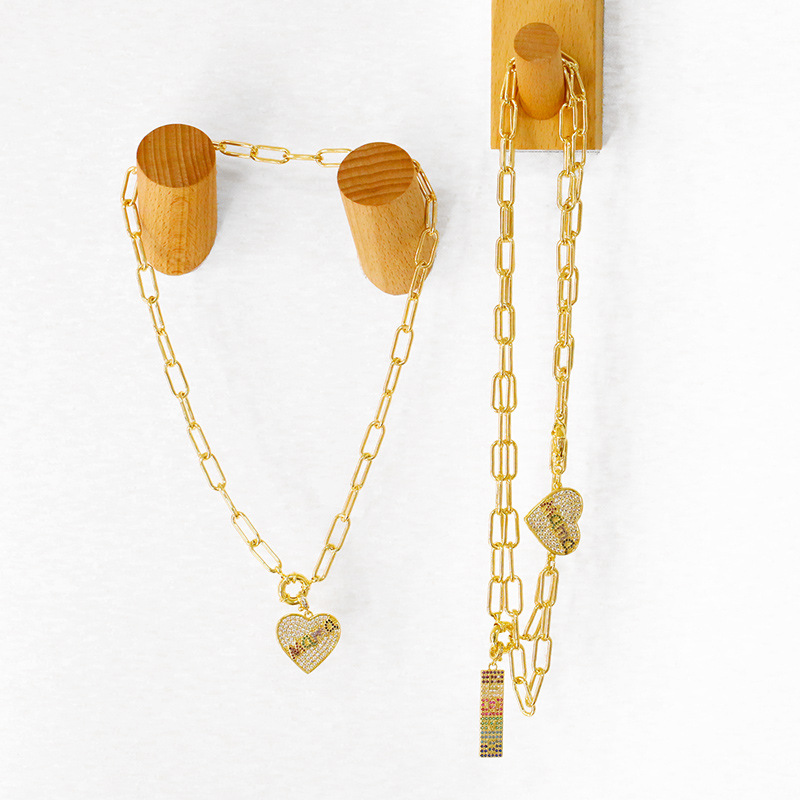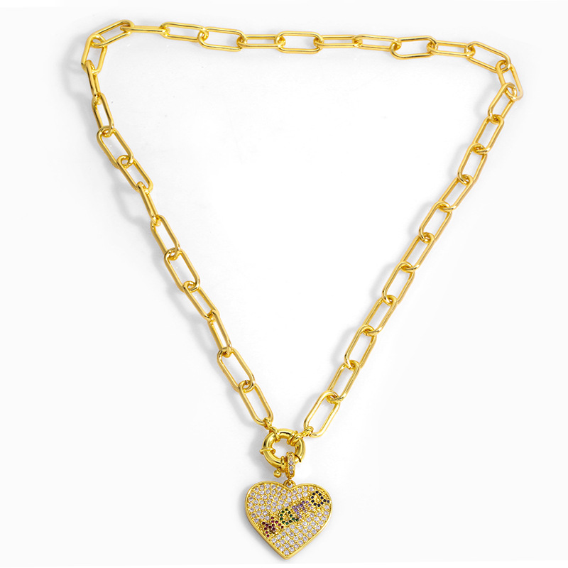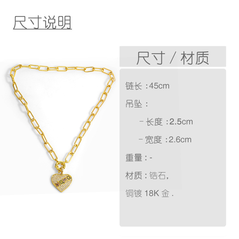 Clearance peach heart necklace clavicle chain exaggerated love pendant hip hop necklace wholesale nkv35