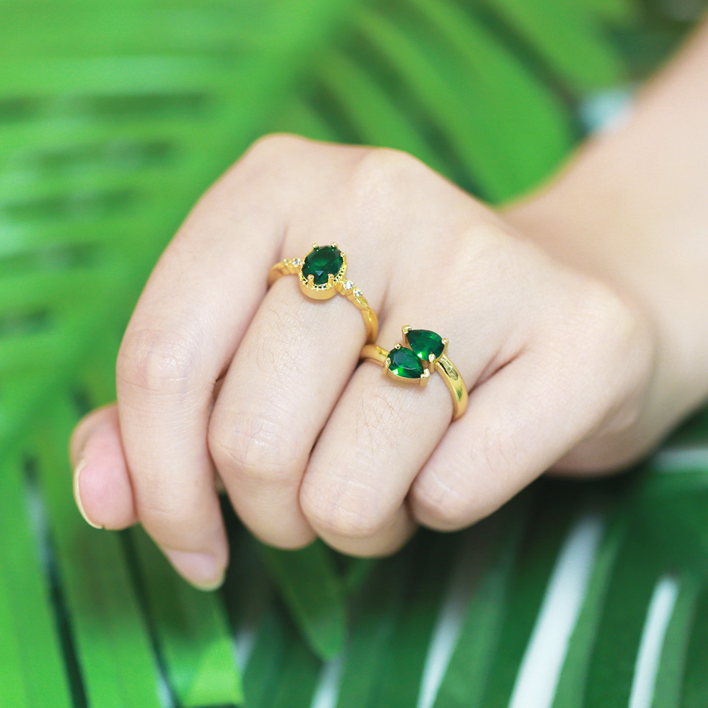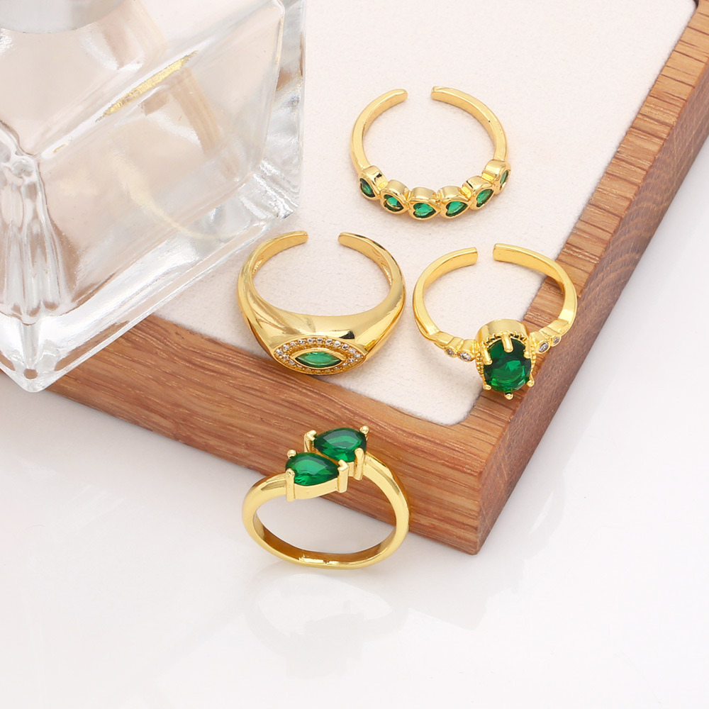 Clearance peacock green diamond ring European and American niche high-end geometric ring geometric love index finger ring rip79