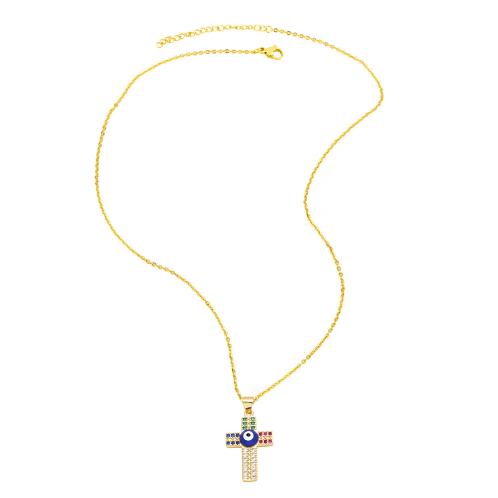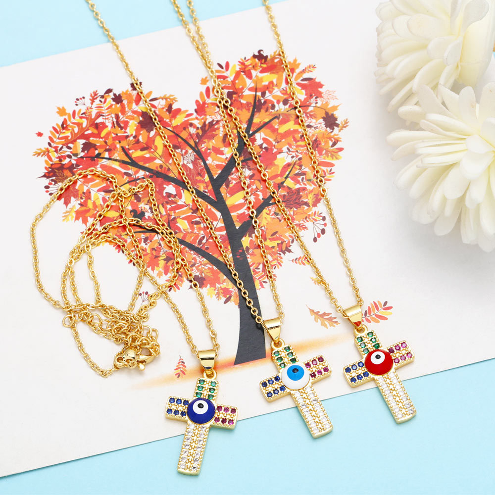 Clearance personalized diamond dripping devil eye cross necklace European and American niche design clavicle chain nkr29