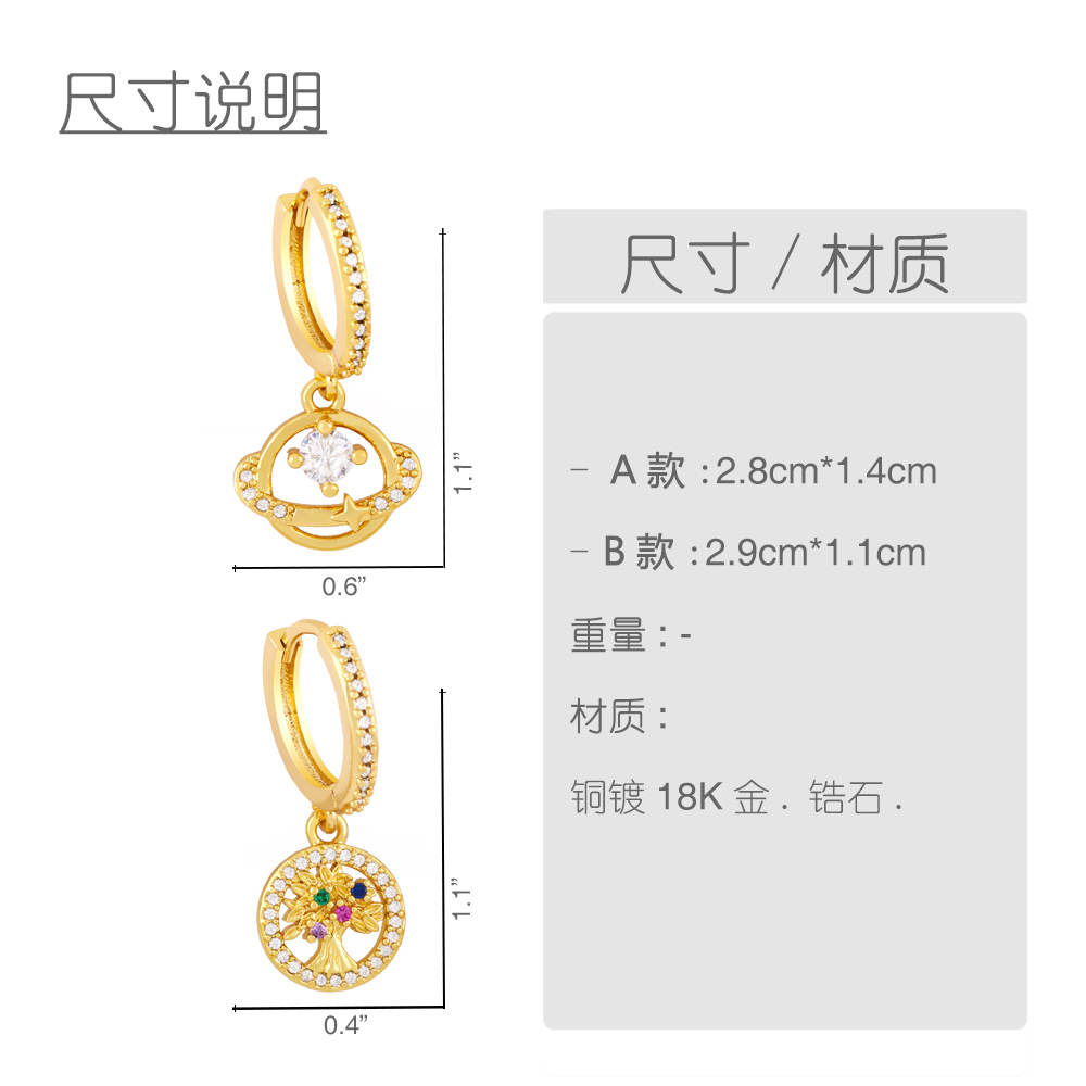 Clearance planet earrings European and American simple niche design earrings flash diamond Saturn diamond earrings wholesale ery56