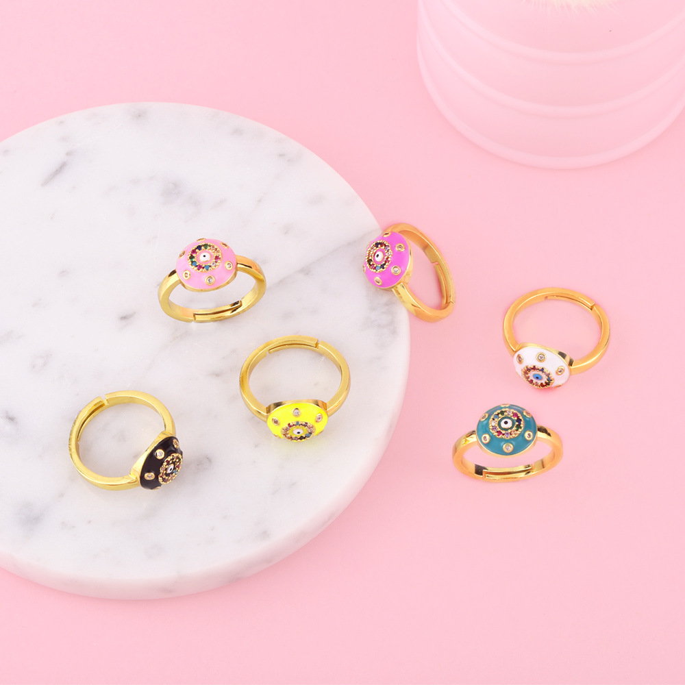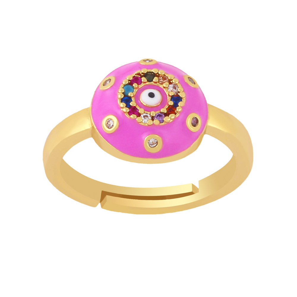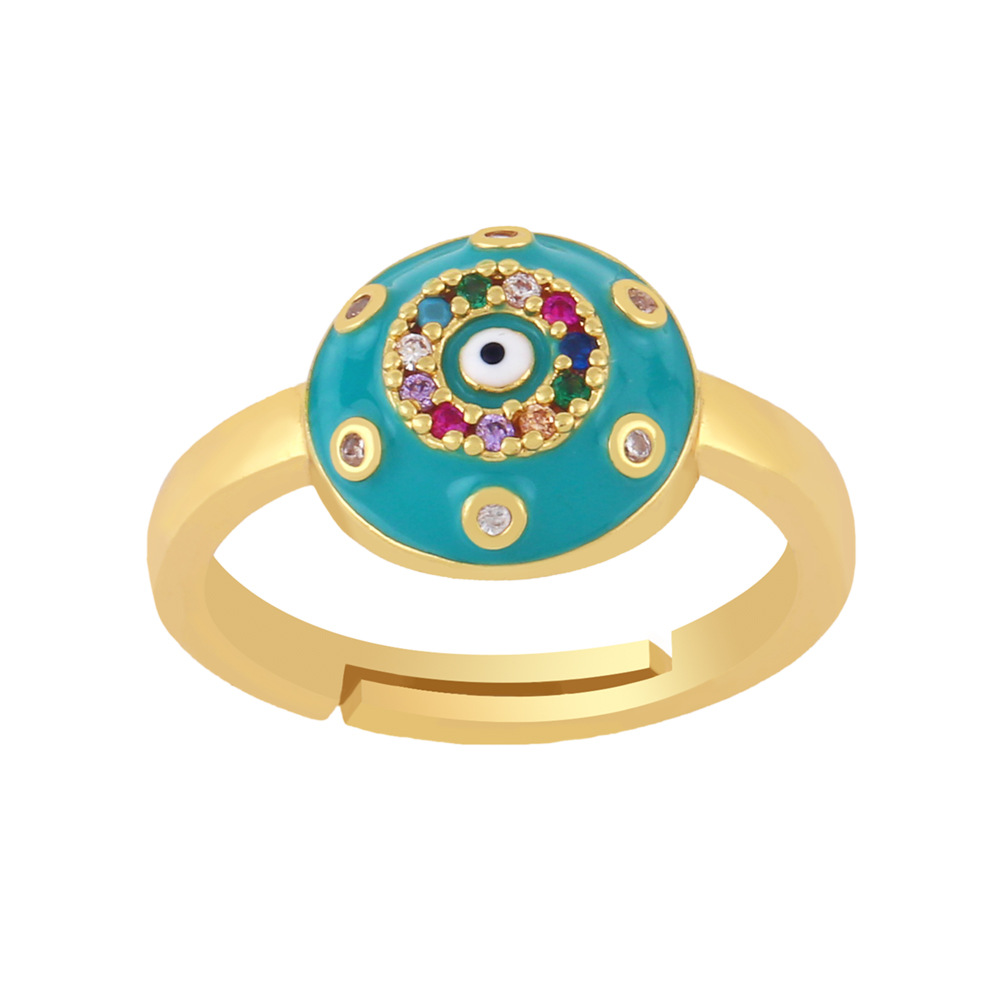 Clearance popular jewelry European and American men and women open copper ring zircon color drop oil eye ring rin46