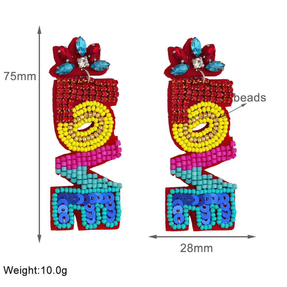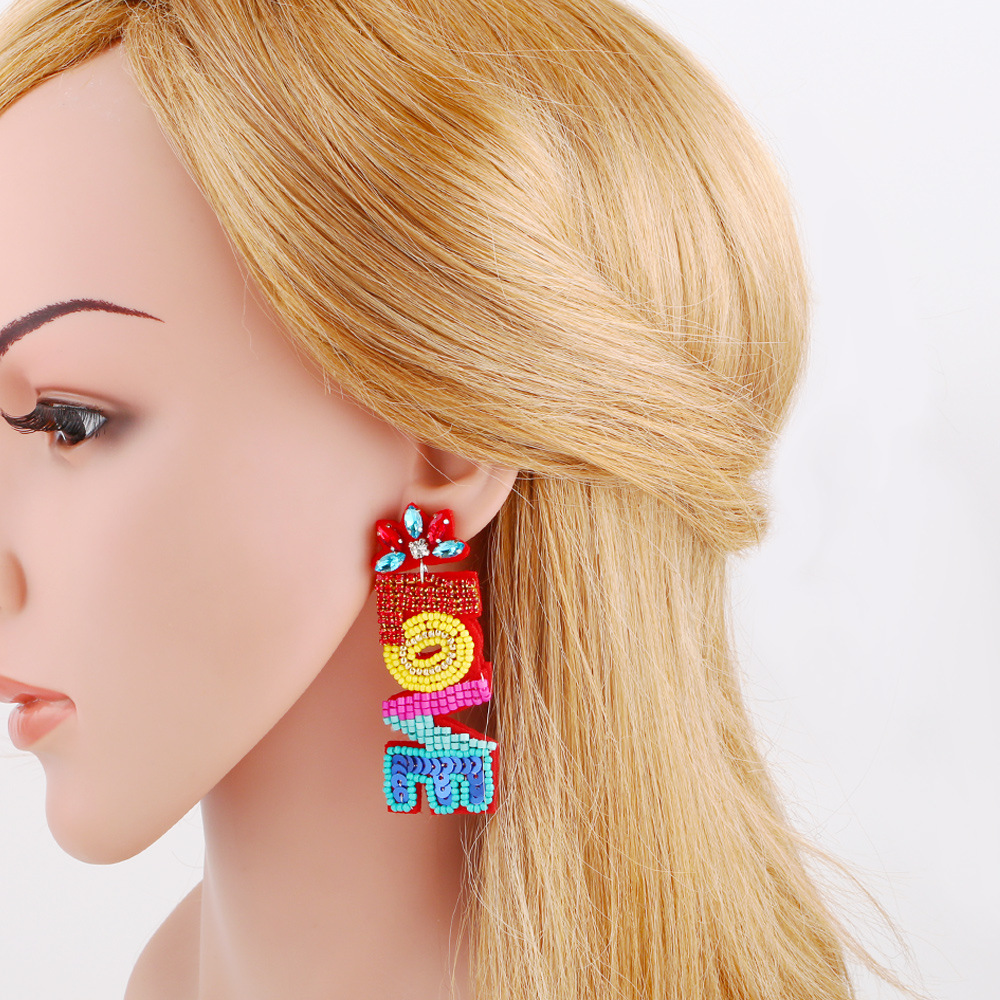 Clearance rice bead earrings women LOVE letter woven pendant earrings earrings jewelry era248