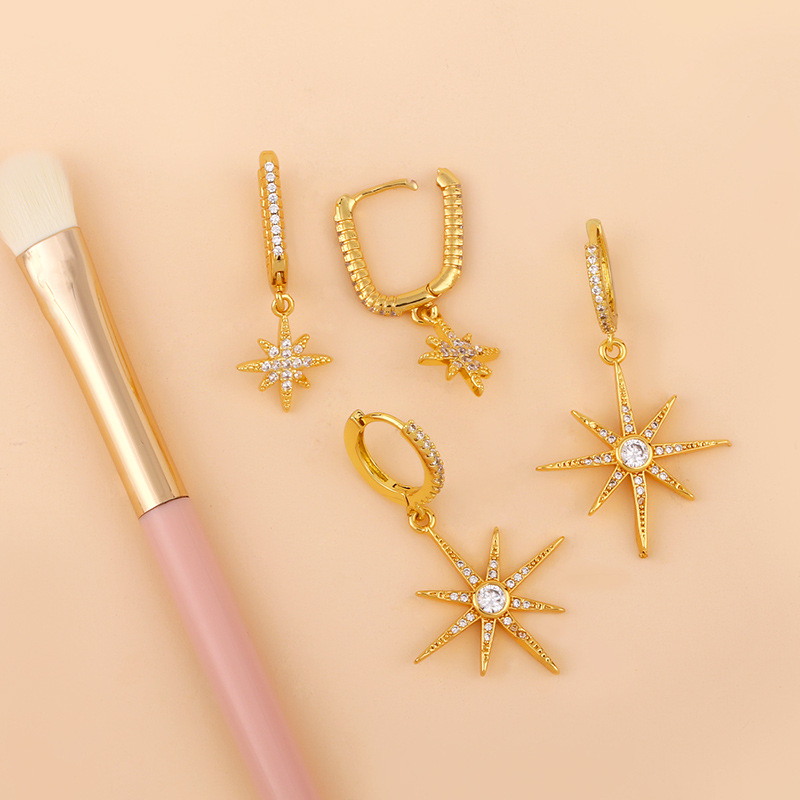 Clearance rice star earrings earrings Japanese and Korean popular diamond eight-pointed star earrings long earrings female eru34