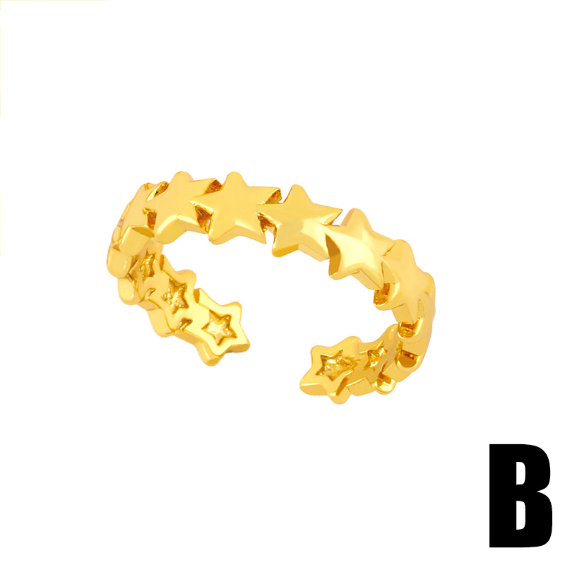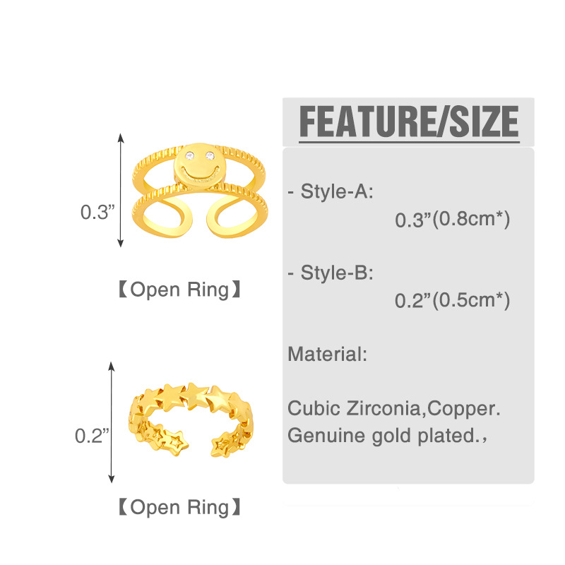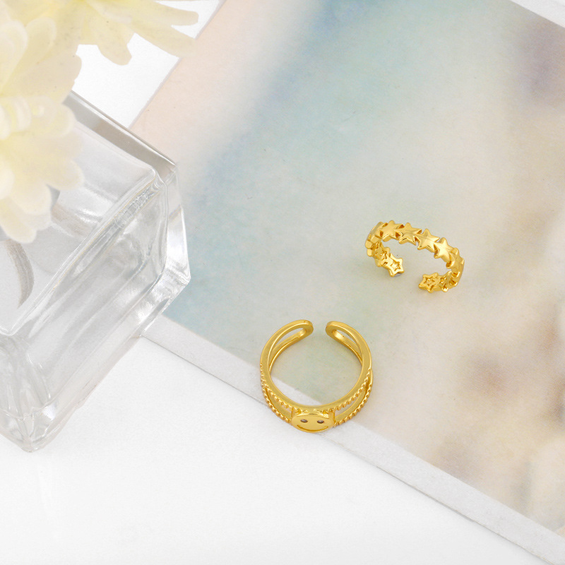 Clearance ring creative double layer smiley face ring female open ring adjustable five-pointed star ring rik36