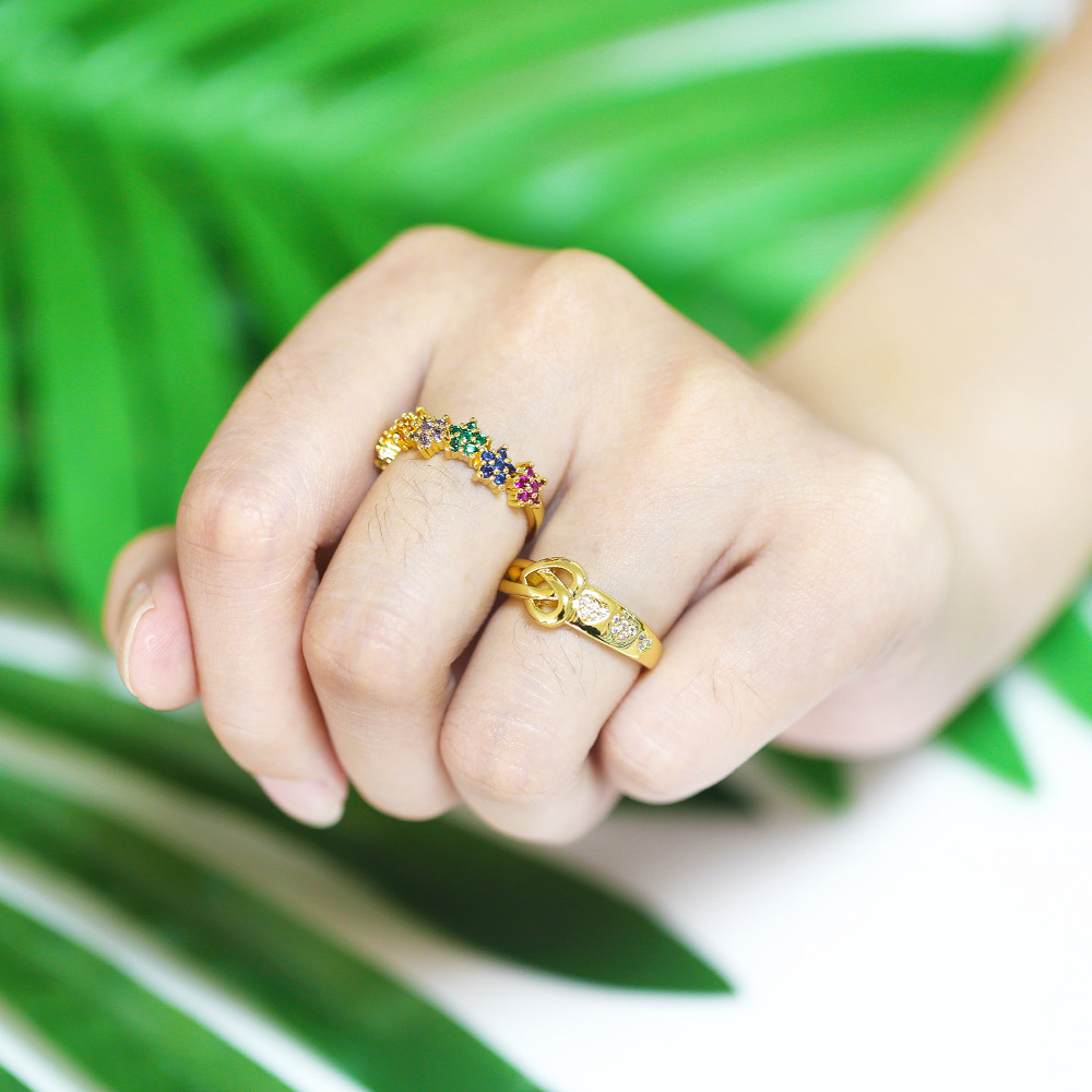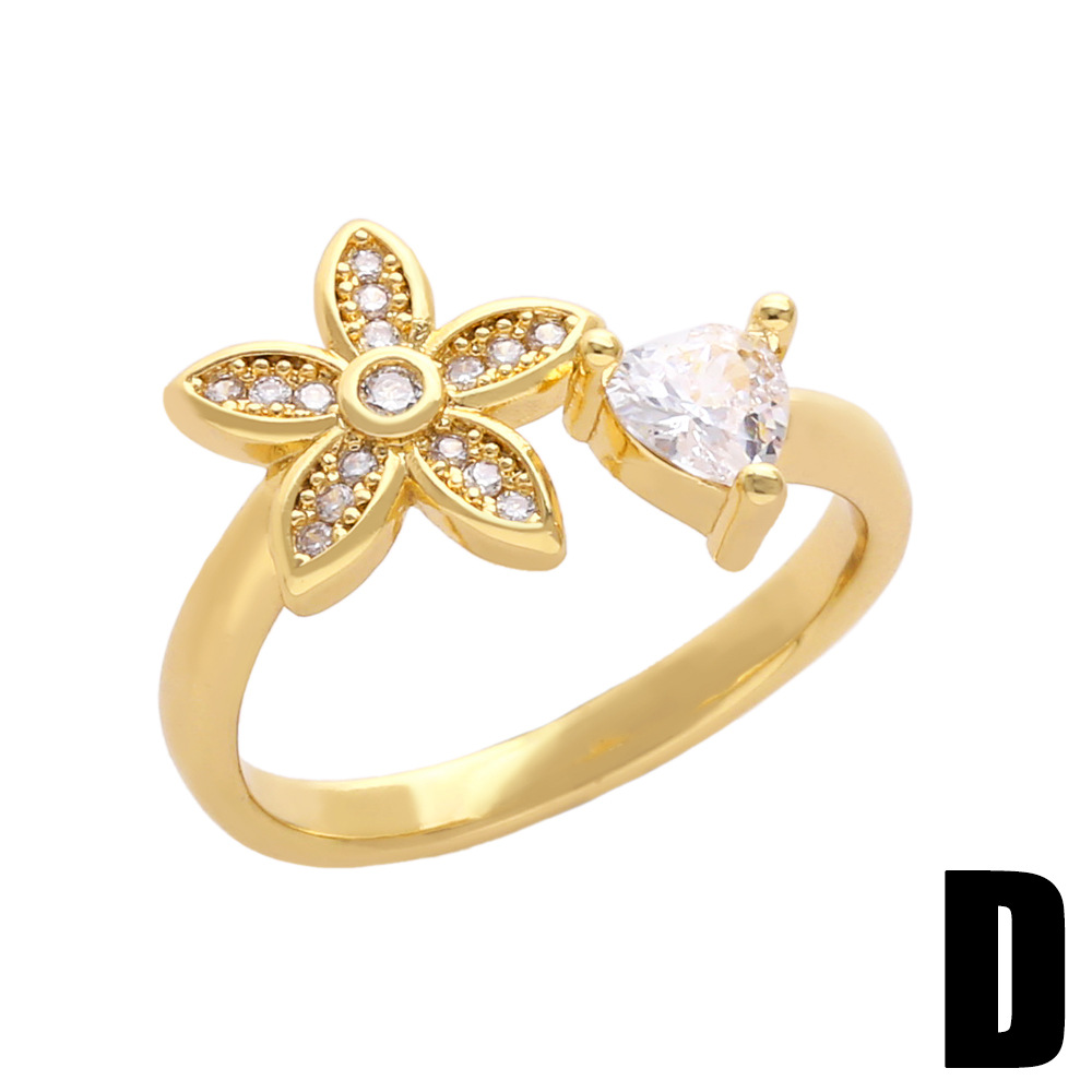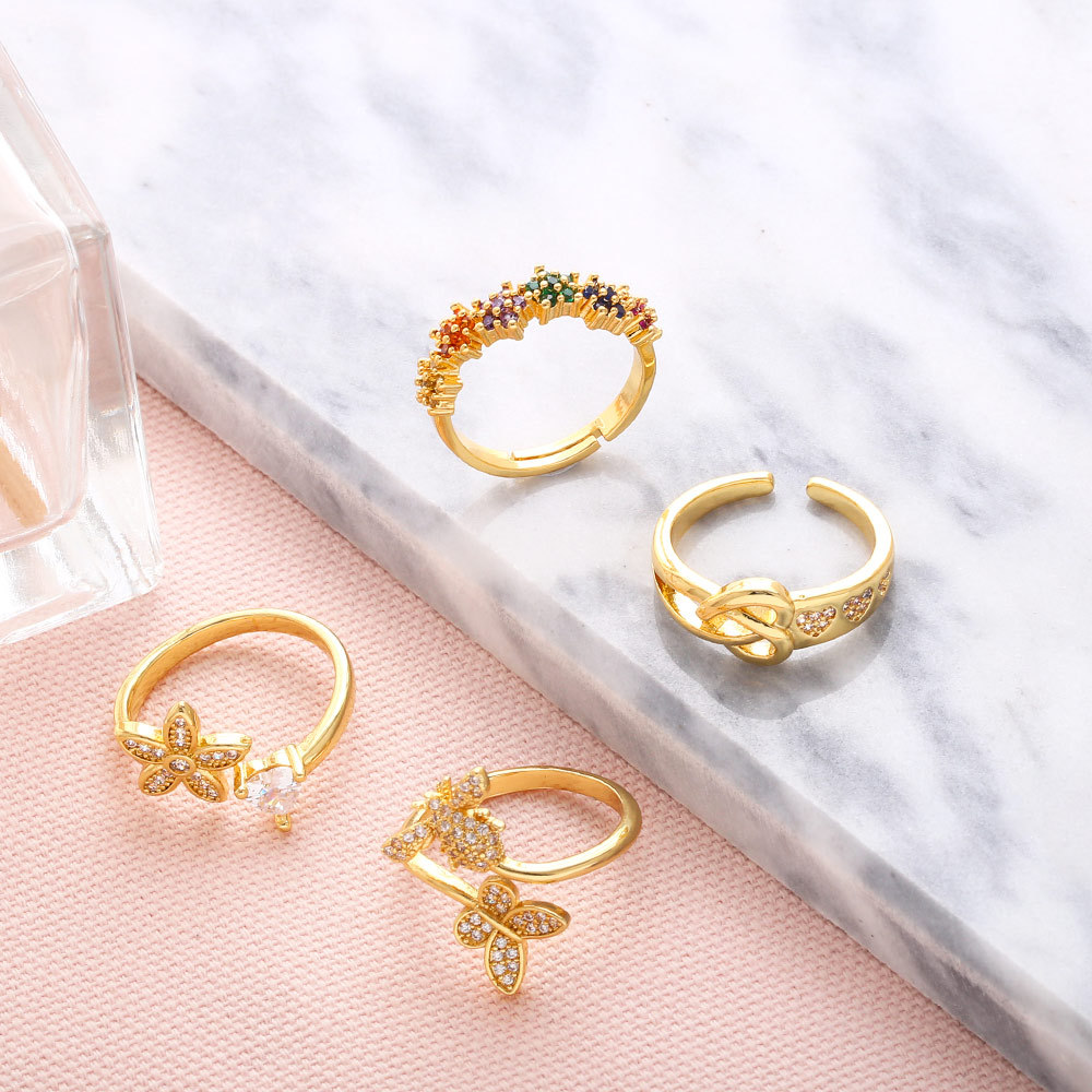 Clearance ring European and American inlaid colored zircon flower ring female personality butterfly bee open ring rin75