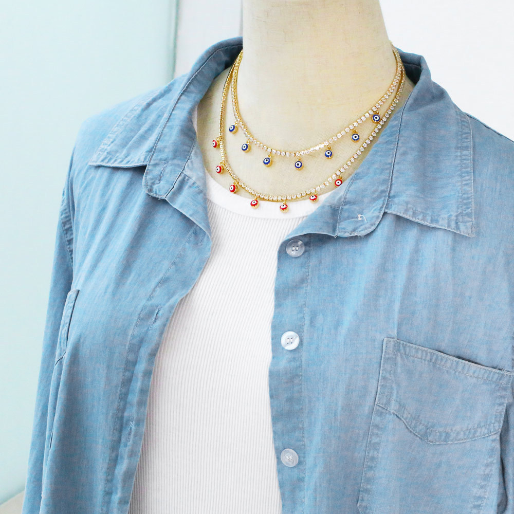 Clearance round devil's eye zircon necklace European and American style niche full diamond sweet cool hot girl style clavicle chain nkb689