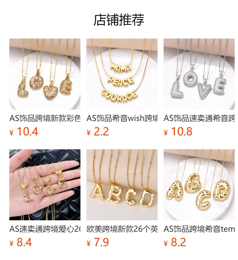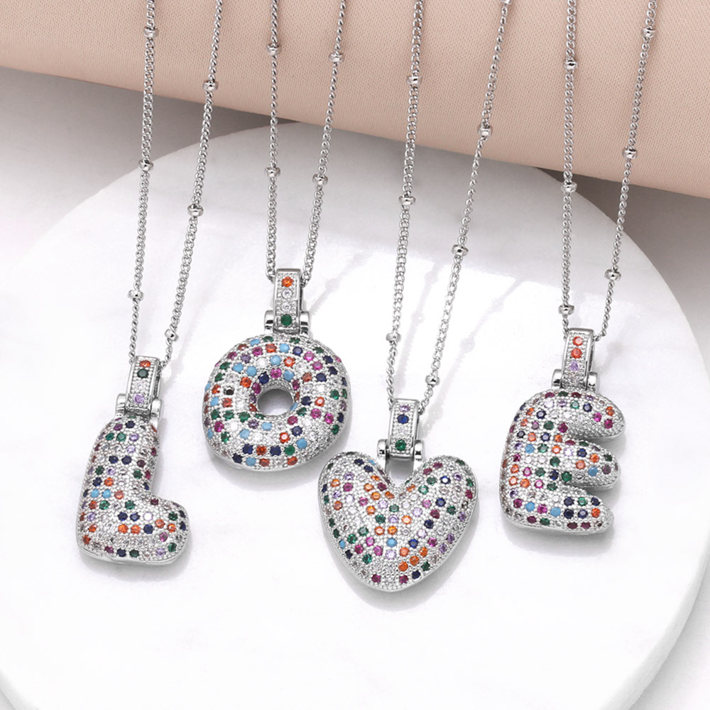 Letter necklace European and American new color zircon necklace with diamond surname English AZ letter necklace nkp25