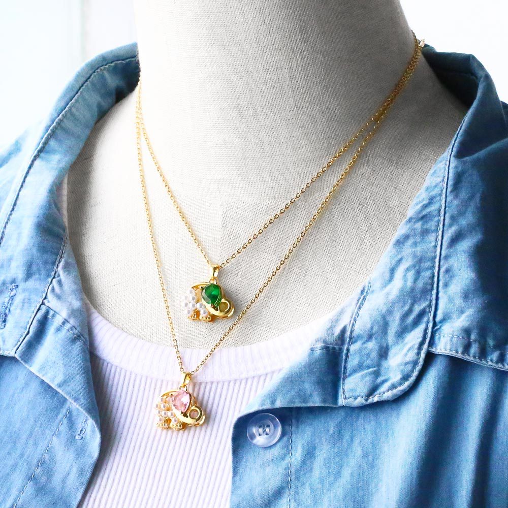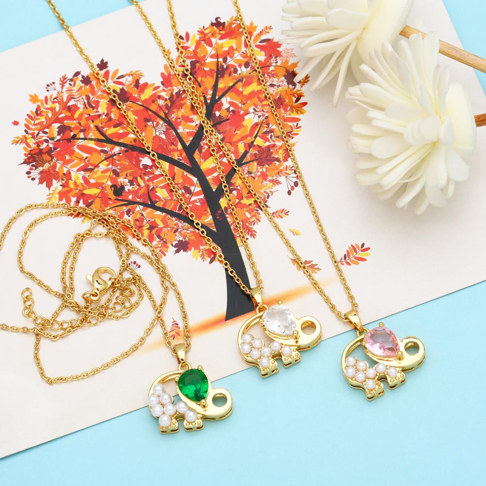 Clearance sale cute elephant pendant women's simple diamond pearl elephant necklace clavicle chain wholesale nkp01