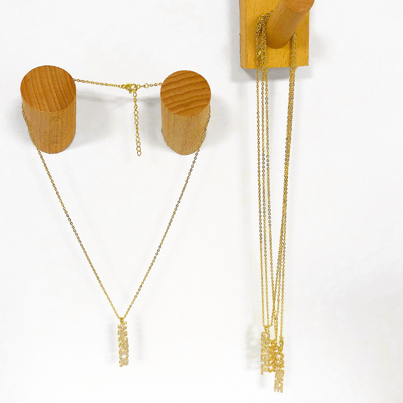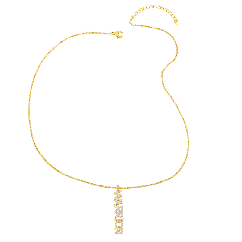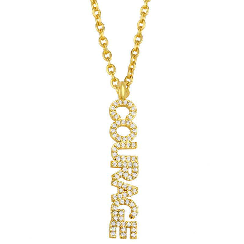 Clearance sale: European and American cursive letter necklace courage pendant micro-inlaid zircon hip-hop jewelry nkt02