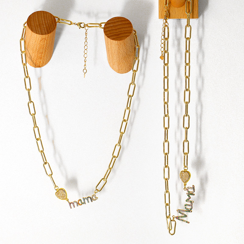 Clearance sale European and American diamond inlaid letters MAMA love necklace thick chain clavicle chain Mother's Day gift nku73
