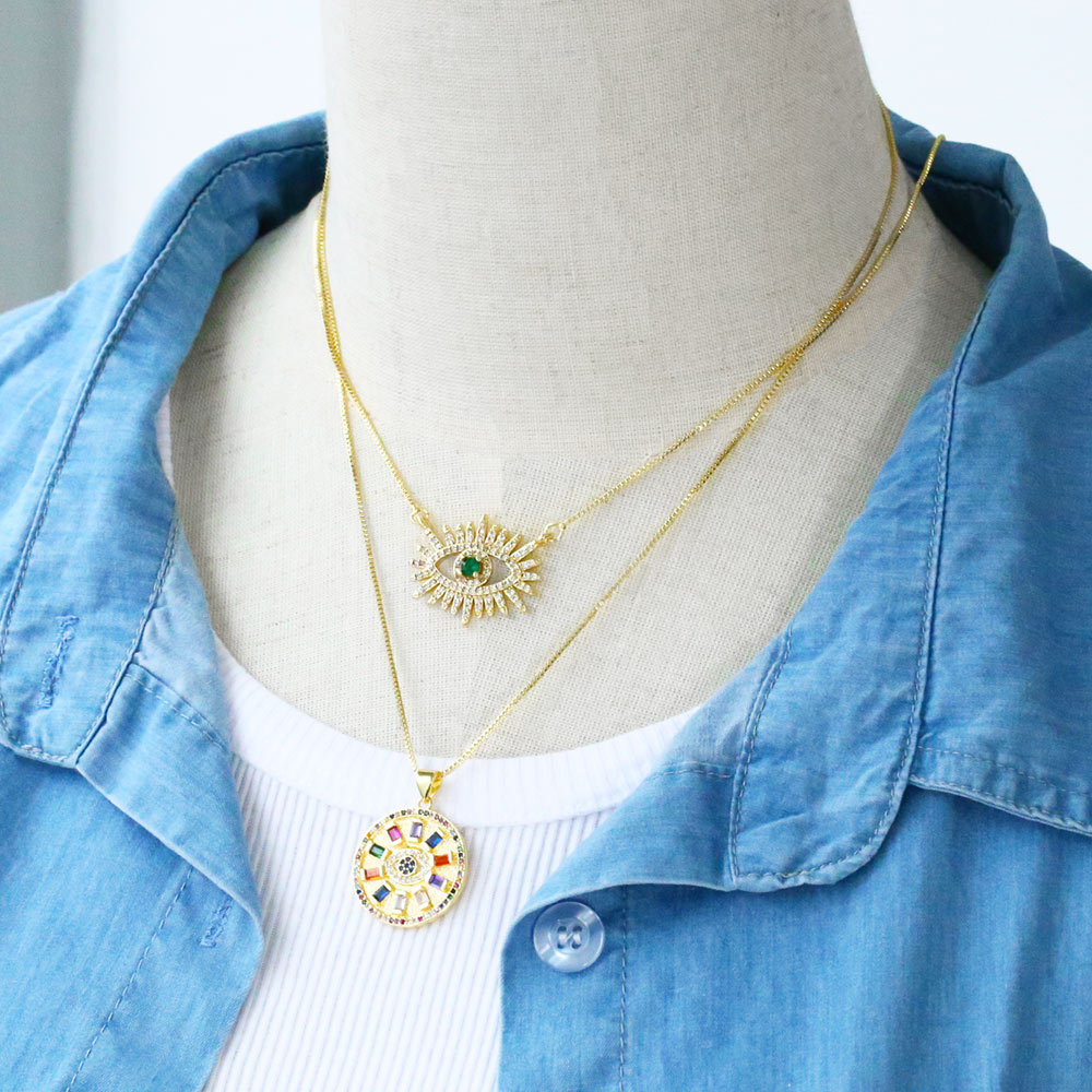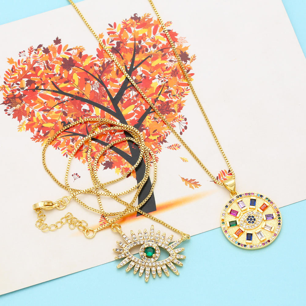 Clearance sale European and American hot jewelry autumn and winter personality micro-inlaid colored zircon devil's eye necklace nkb589