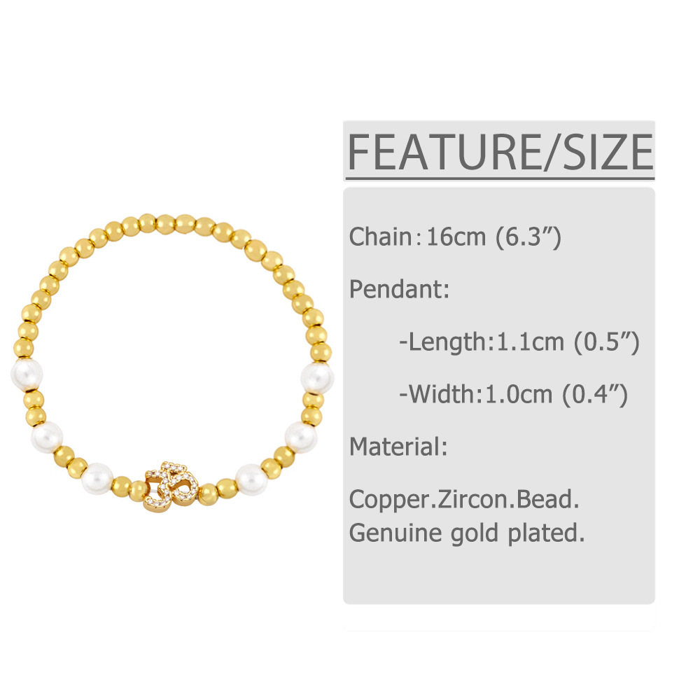 26 English letters bracelet female European and American copper beads pearl elastic bracelet fashion crown letter bracelet brf80