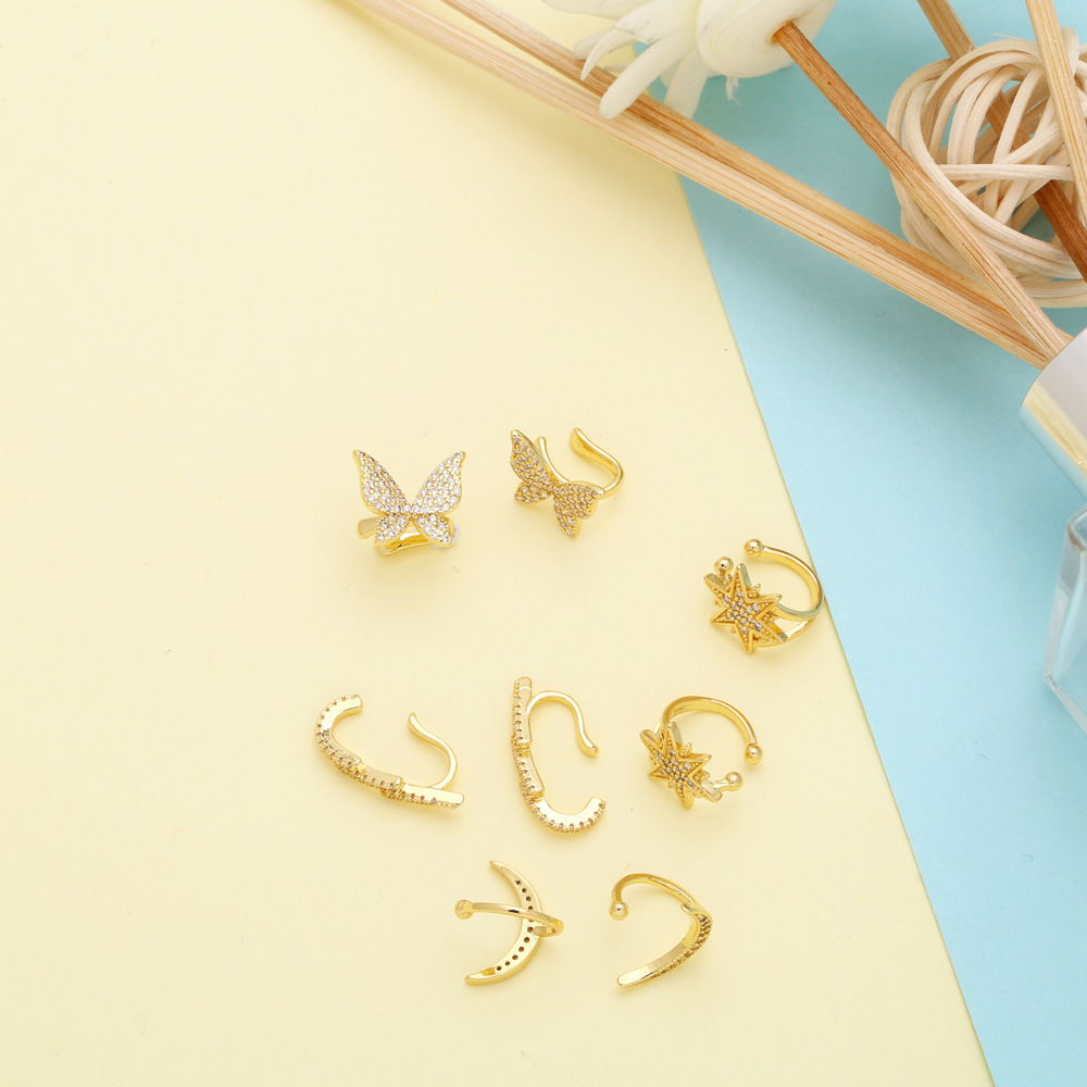 Clearance sale European and American inlaid zircon butterfly ear clip six-pointed star moon no ear piercing ear bone clip earring earrings female err92