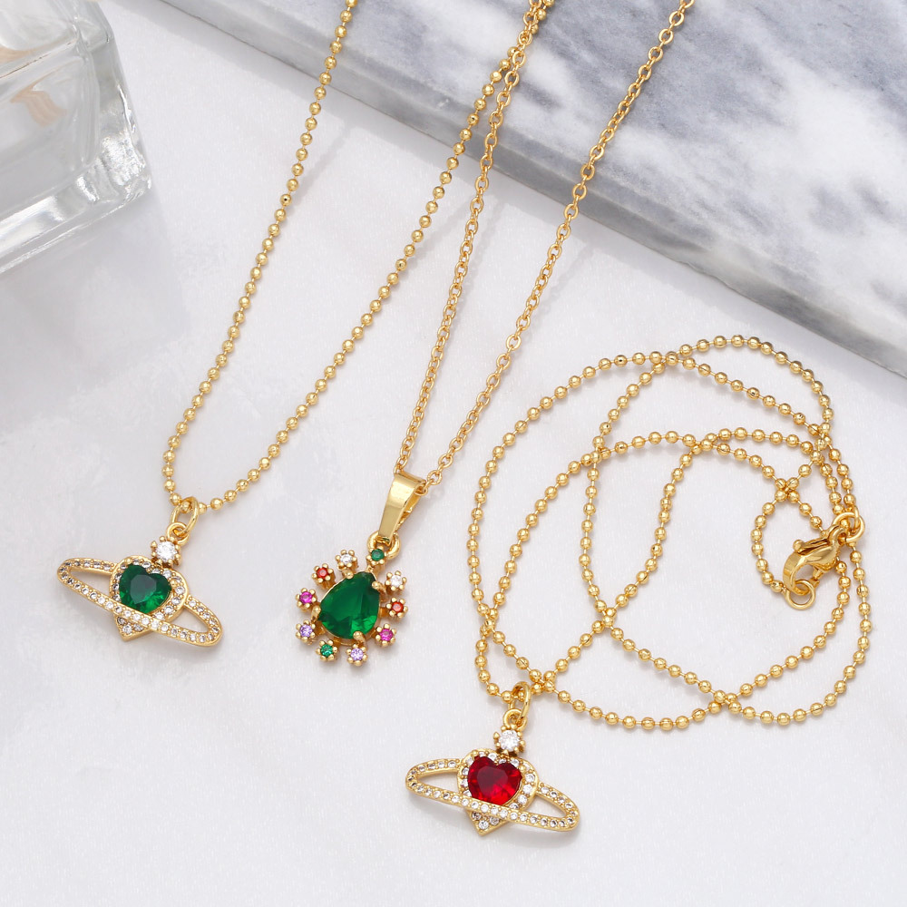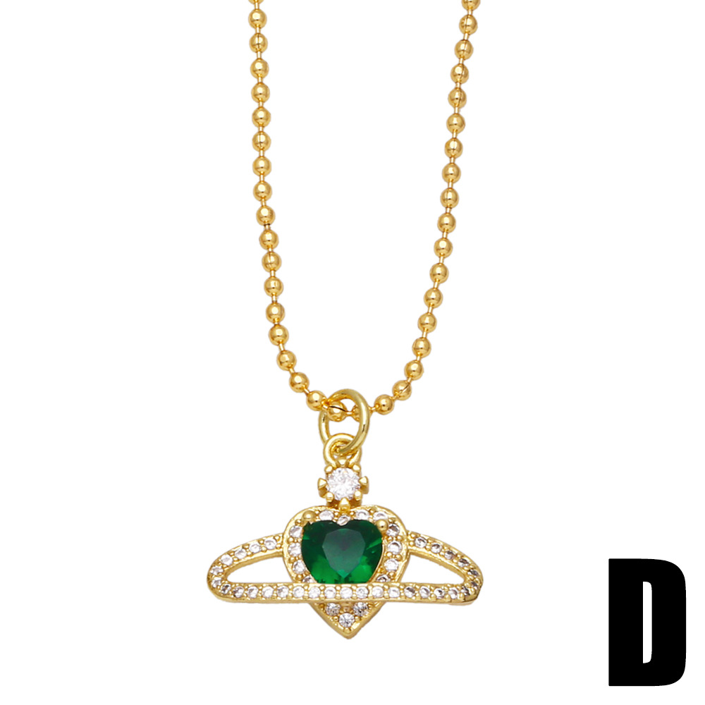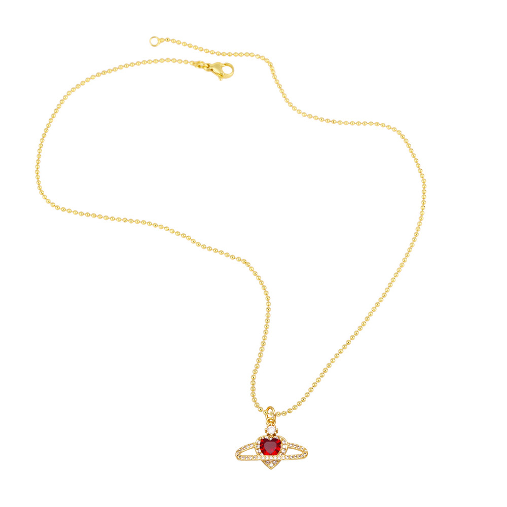 Clearance sale European and American jewelry creative personality trend micro-inlaid zircon heart-shaped planet necklace female nkb254
