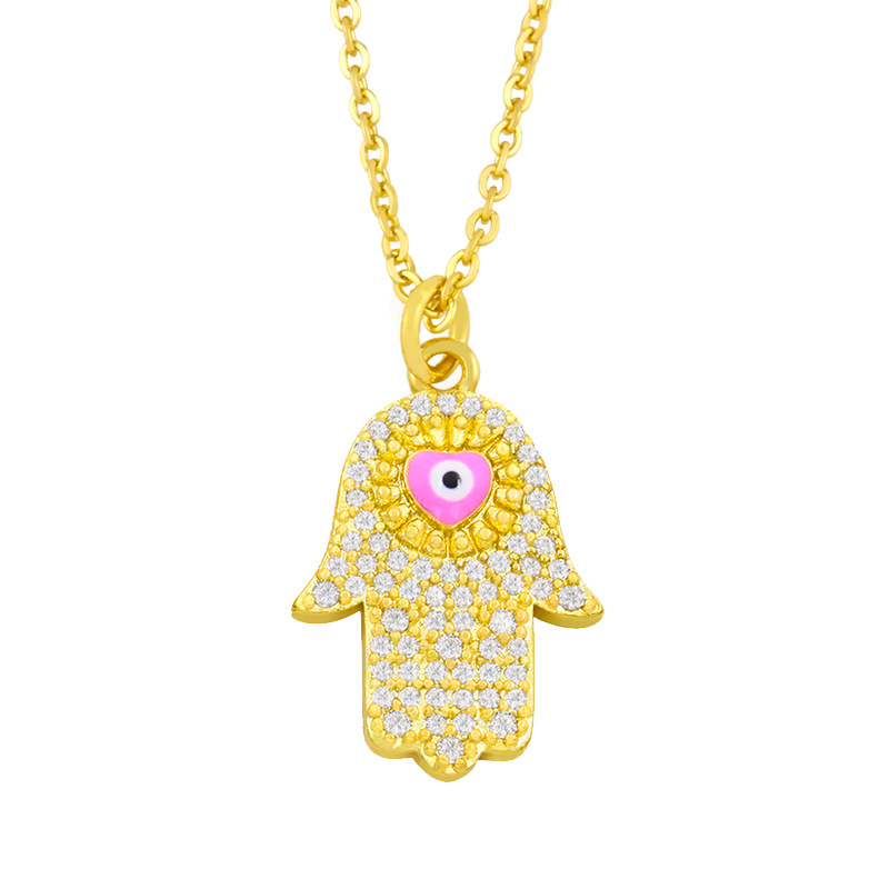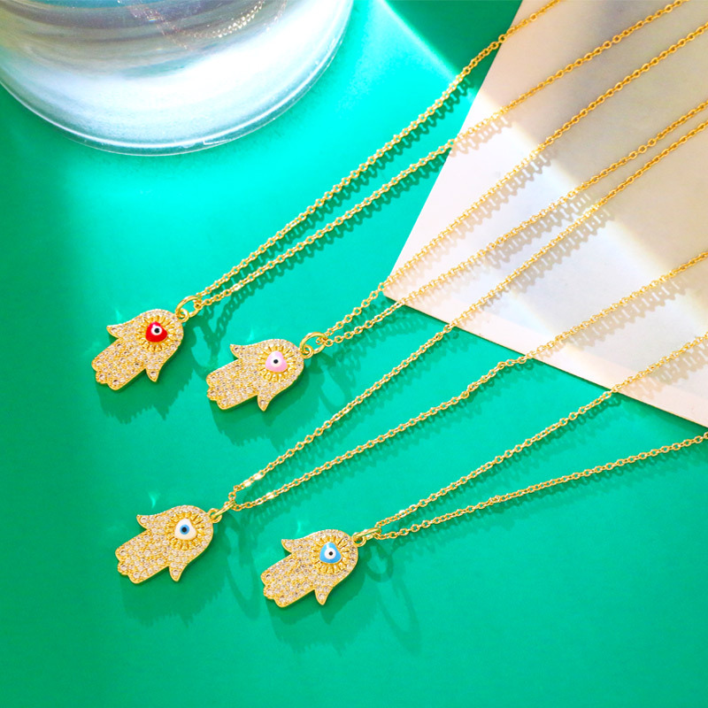Clearance sale European and American necklace women's micro-inlaid zircon devil's eye palm pendant clavicle necklace nkw52