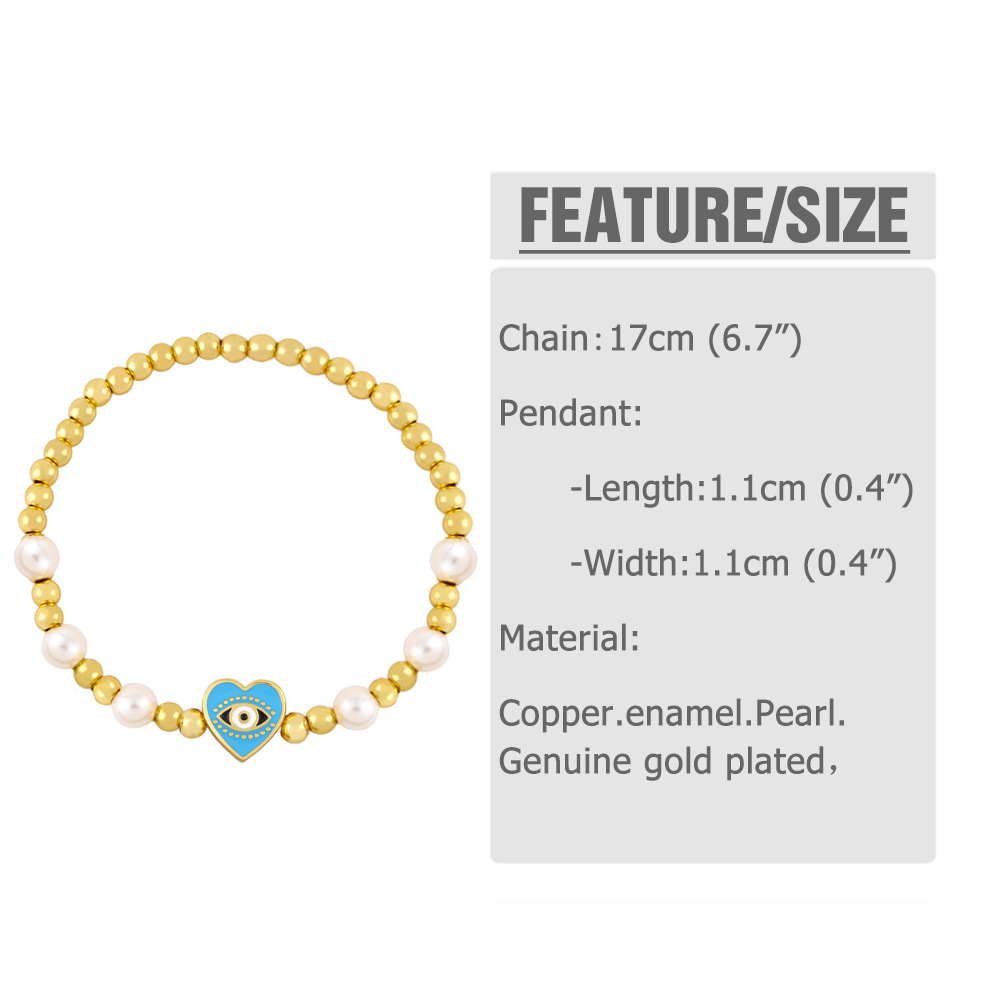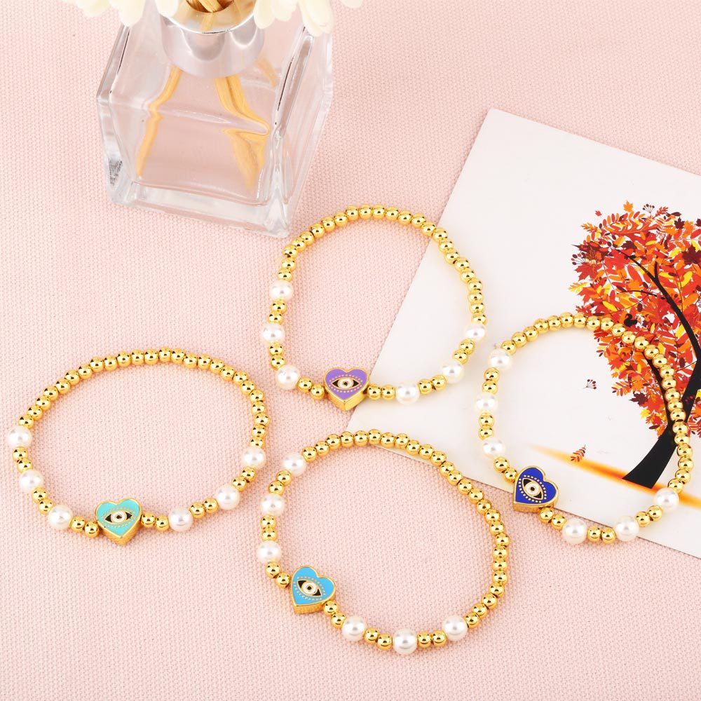Clearance sale heart-shaped devil's eye bracelet European and American celebrity pearl gold beaded elastic bracelet bre80