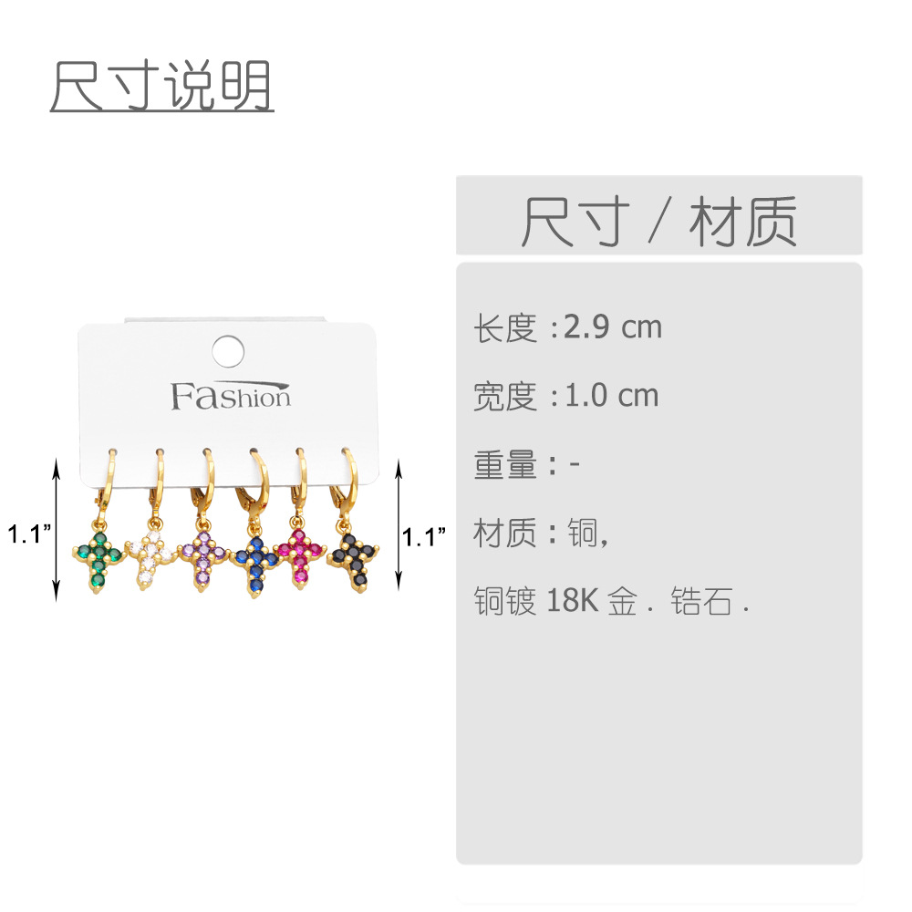 Clearance sale hot sale six-piece cross earring set European and American micro-inlaid colored zircon earrings era155