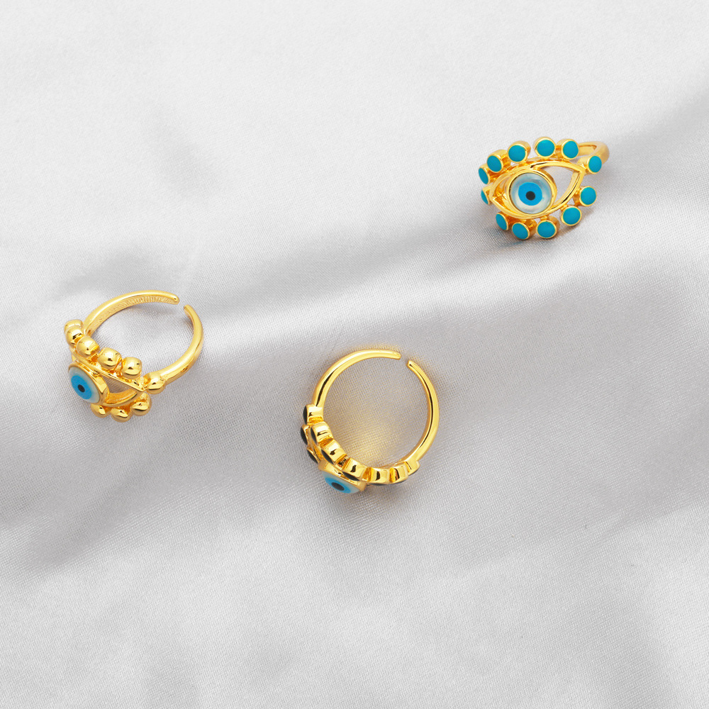 Clearance sale hot selling jewelry Turkish blue eye open ring female oil drop devil eye ring rij37