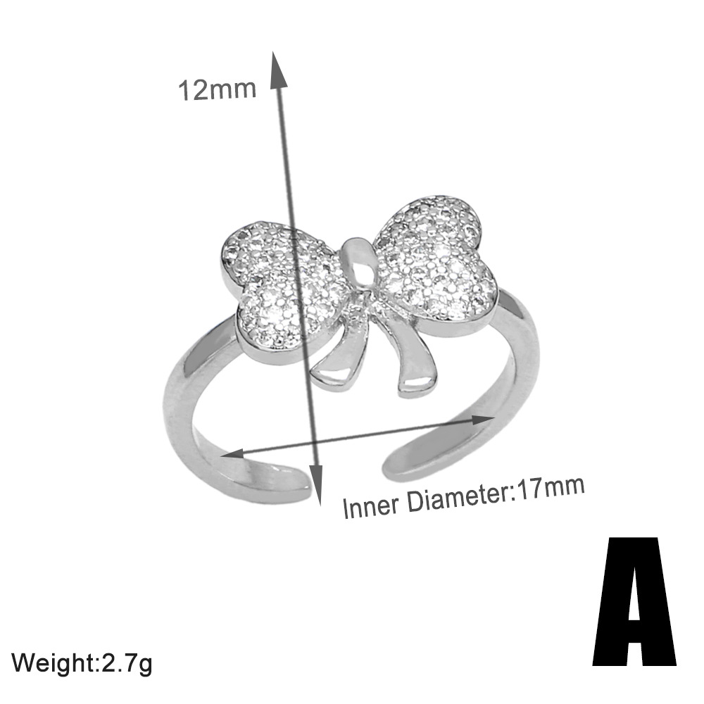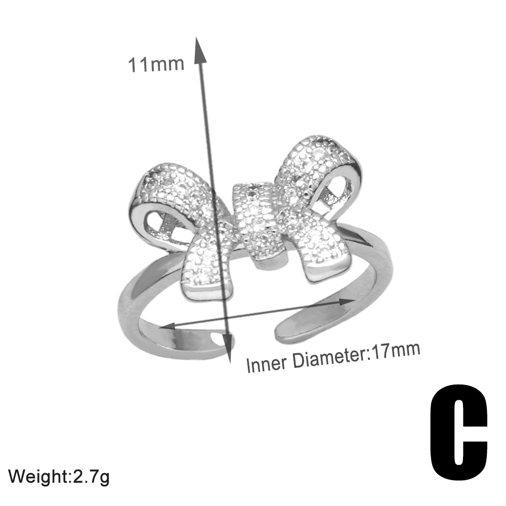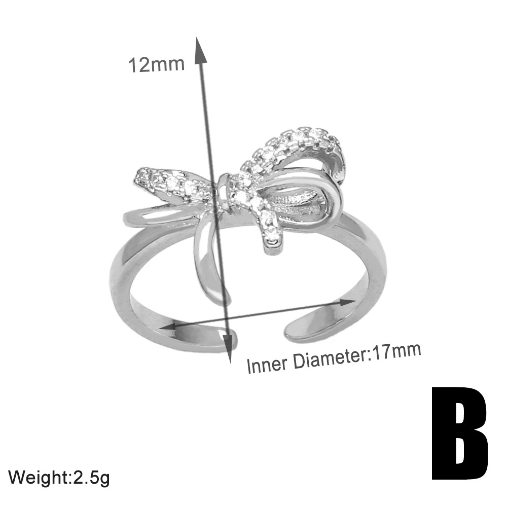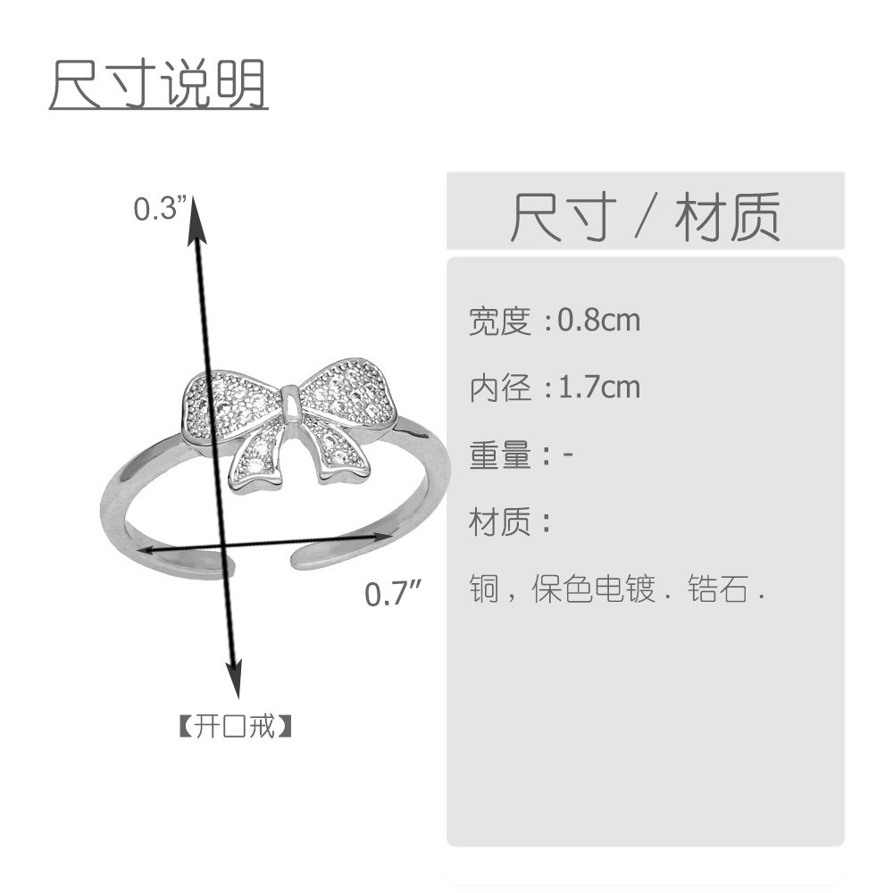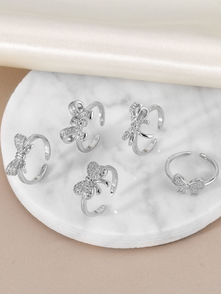 Clearance sale inlaid zircon bow ring female high-end platinum plated open ring jewelry rip87