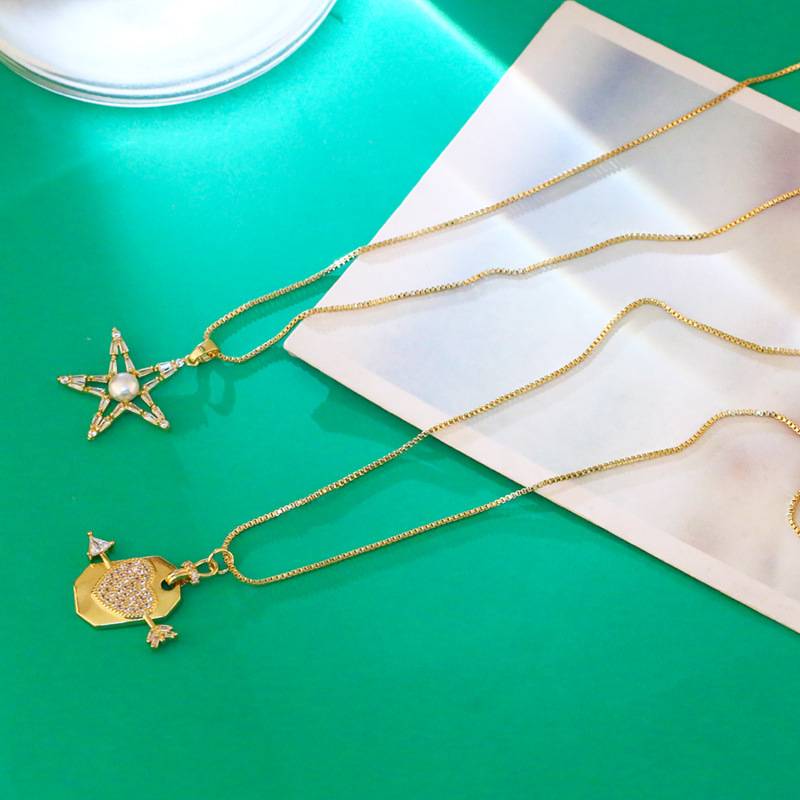 Clearance sale inlaid zircon pearl five-pointed star necklace female style simple fashion net red clavicle chain trendy necklace nkw13