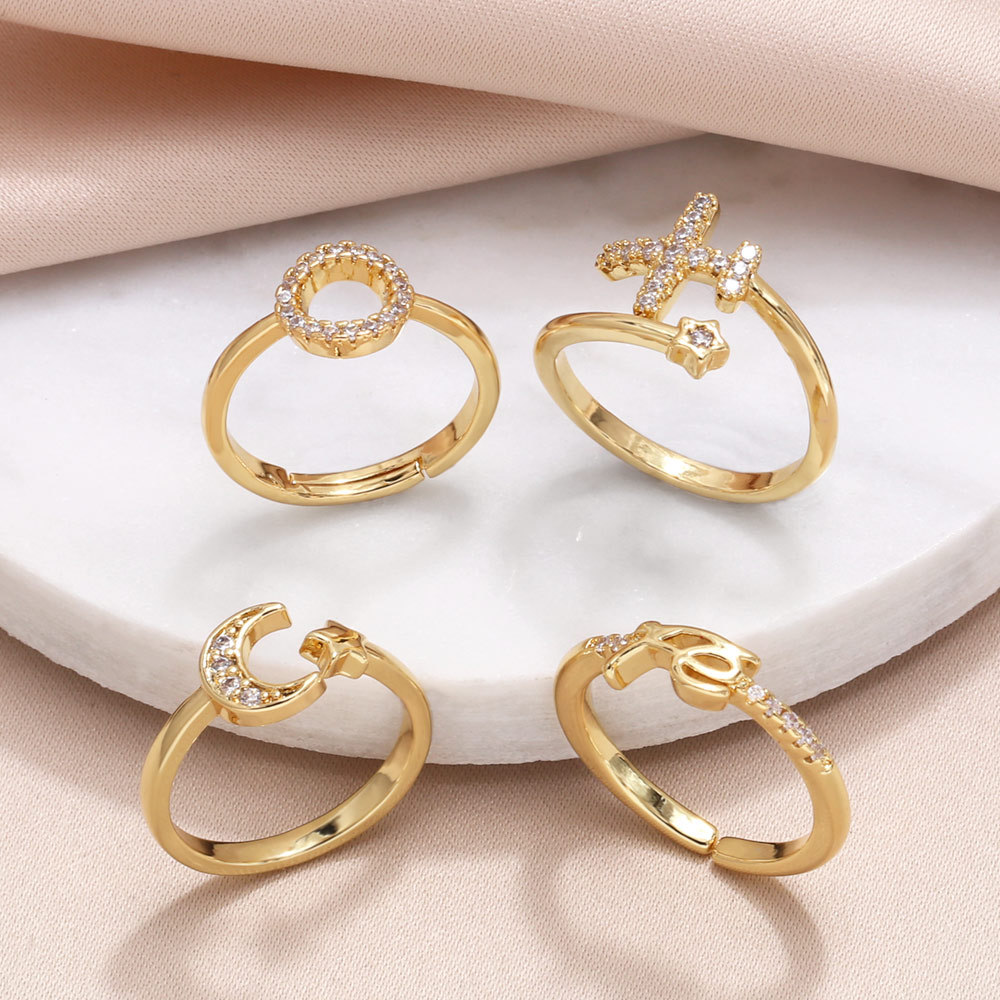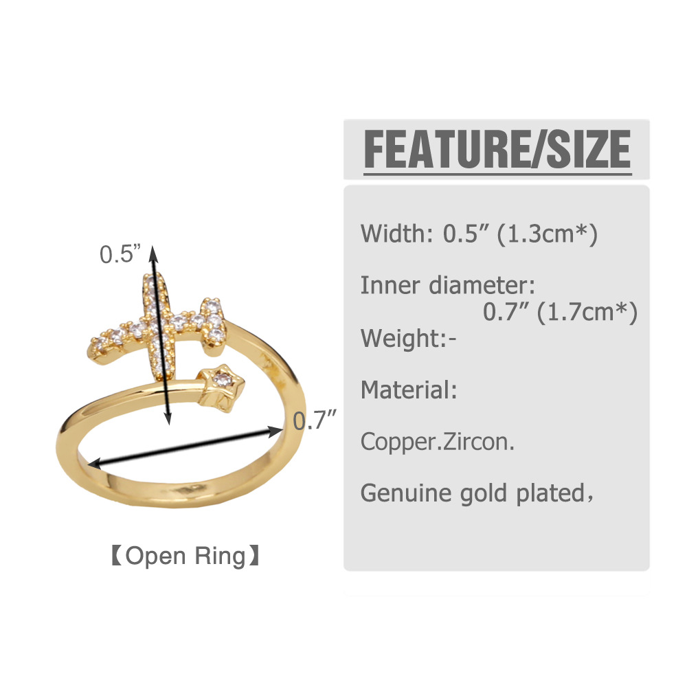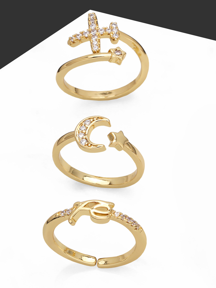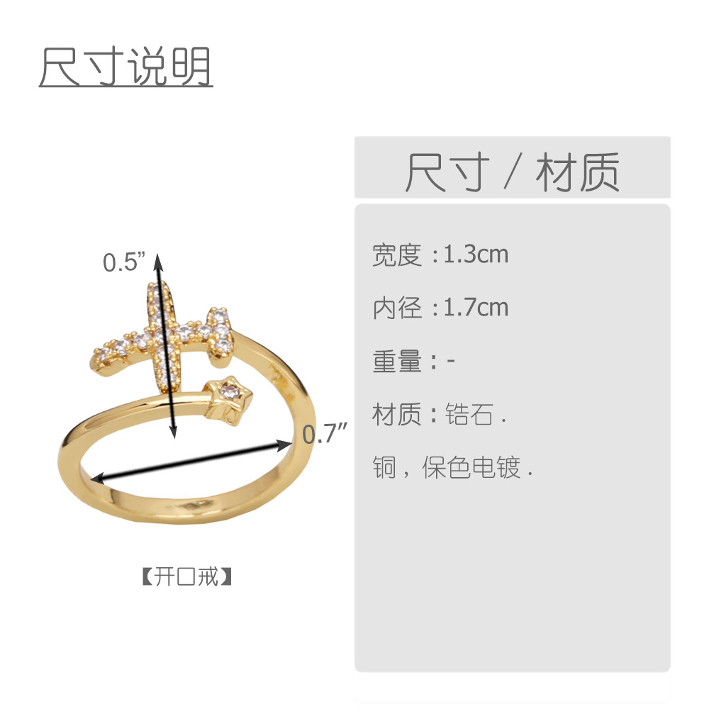 Clearance sale inlaid zircon ring female niche design gold-plated moon airplane open ring ris82