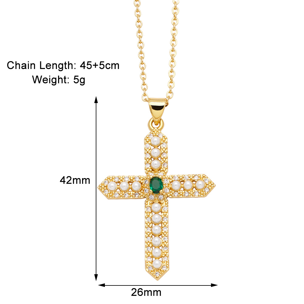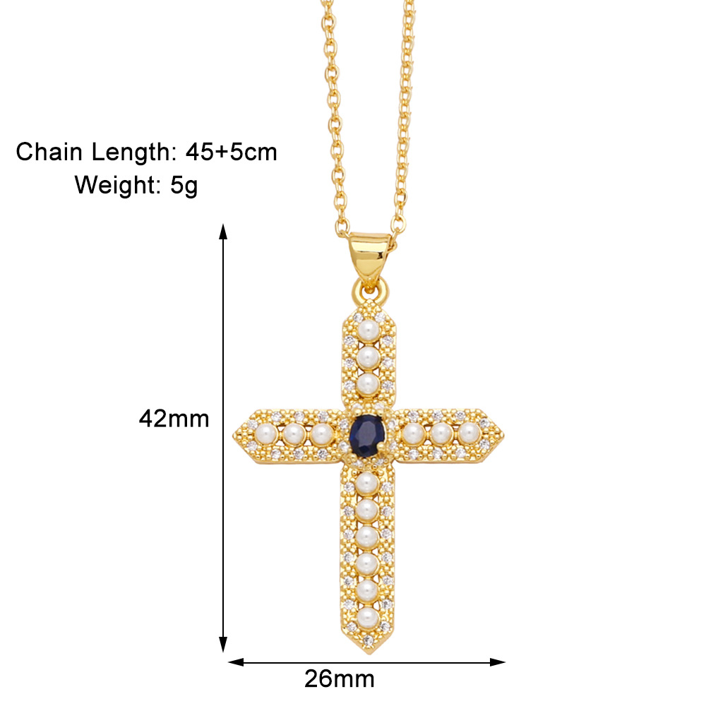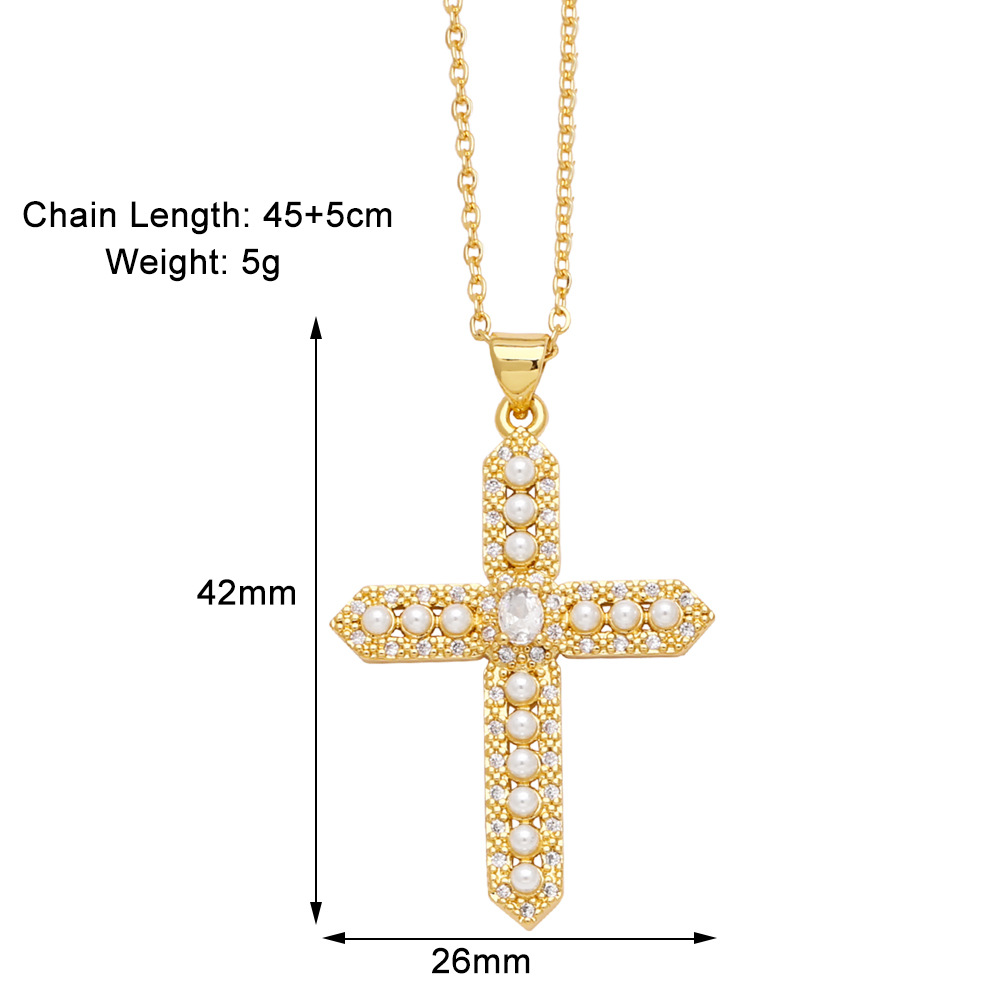 Clearance sale pearl necklace creative inlaid zircon gold-plated cross pendant necklace nkb844