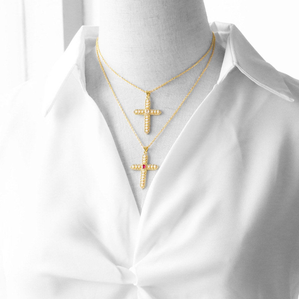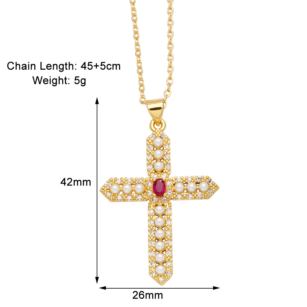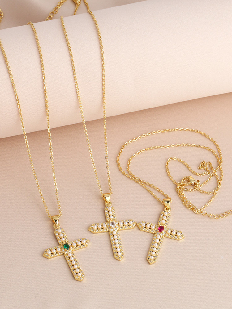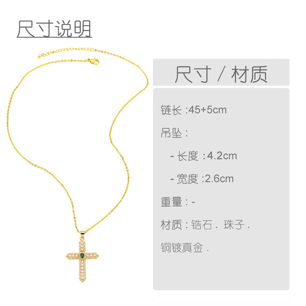Clearance sale pearl necklace creative inlaid zircon gold-plated cross pendant necklace nkb844